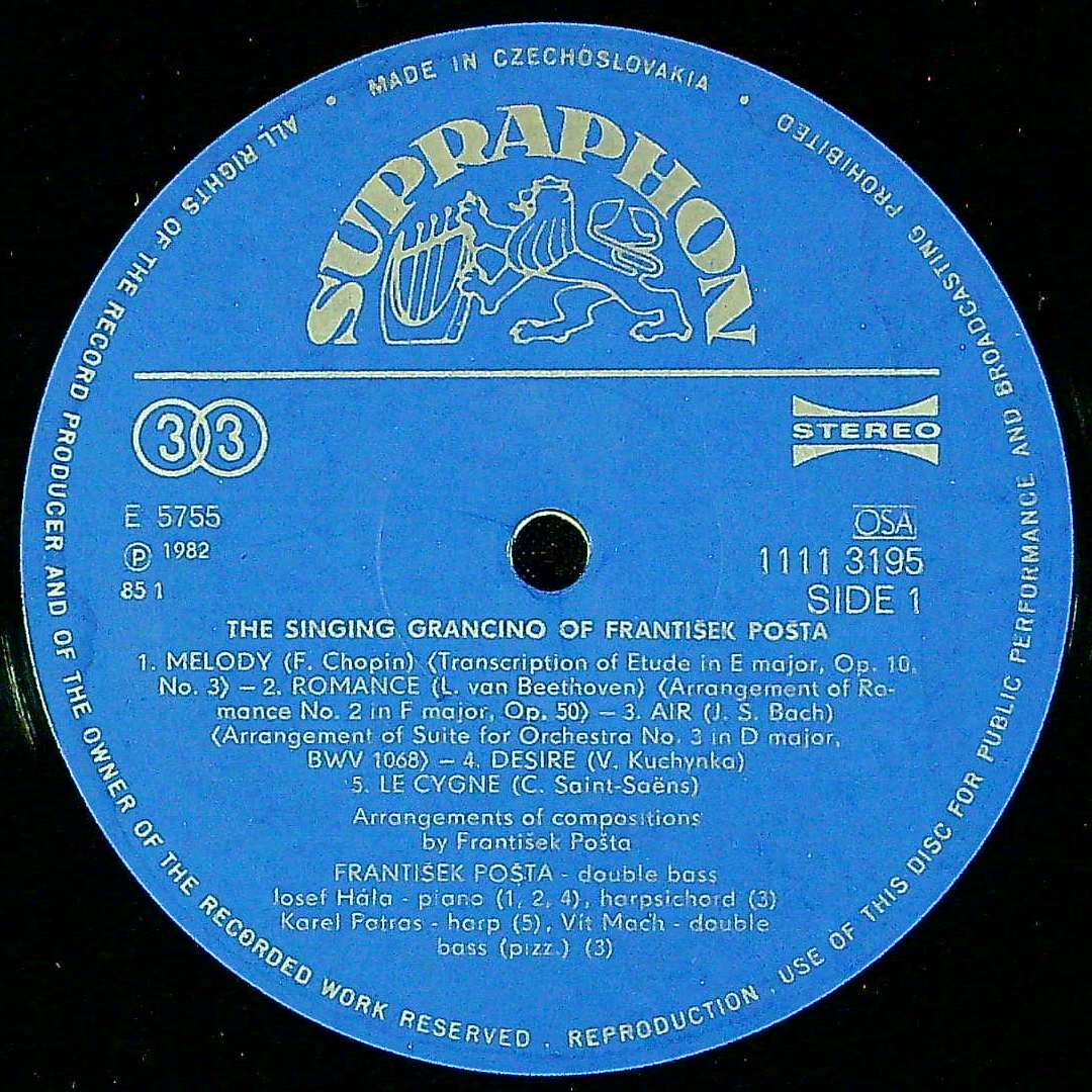 商品コード:1386-040n[SUPRAPHON] F.ポシュタ(cb/ヴィオローネ) 他 / Cb曲集(全11曲)/ショパン, ベートーヴェン, サン・サーンス, ドヴォルザーク, ヘンデル 他