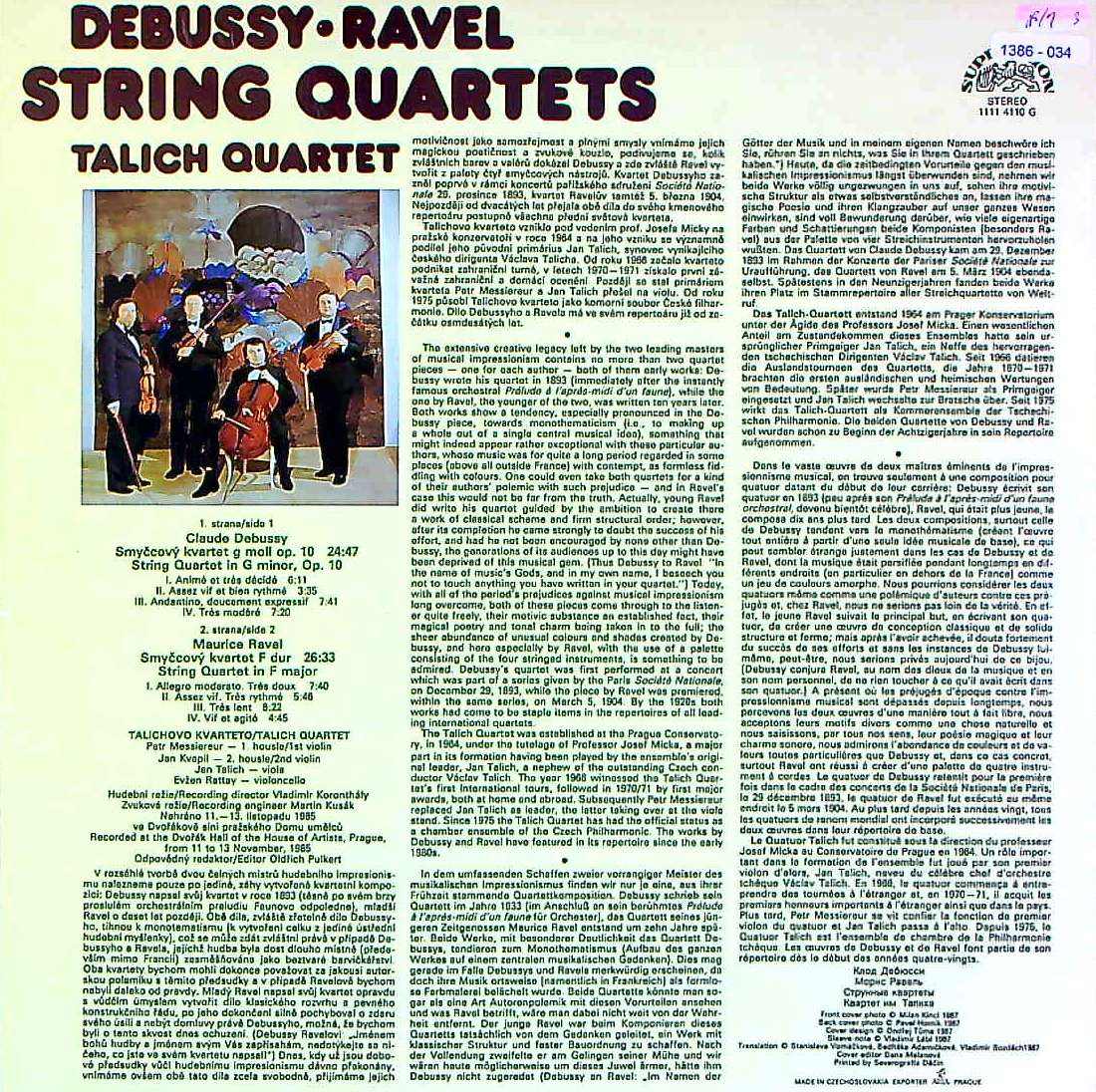 商品コード:1386-034t[SUPRAPHON] ターリヒQt. / ドビュッシー:弦楽四重奏曲Op.10, ラヴェル:弦楽四重奏曲ヘ長調