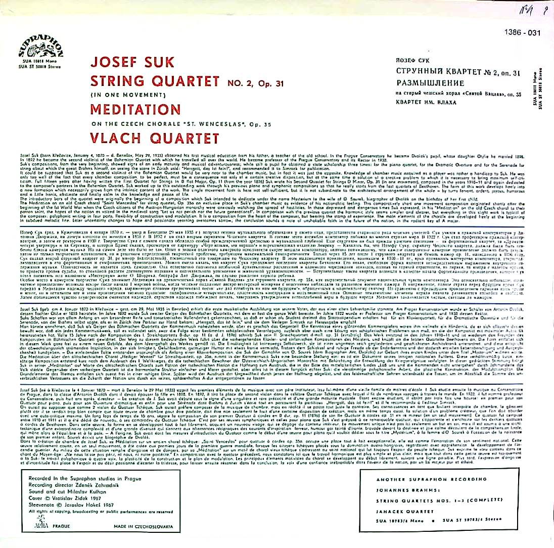 商品コード:1386-031[SUPRAPHON] ヴラフQt. / スーク:弦楽四重奏曲2番Op.3, 瞑想曲 Op.35