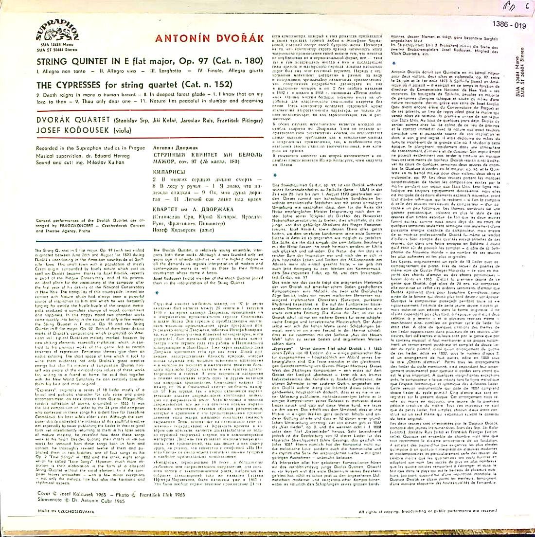 商品コード:1386-019[SUPRAPHON] ドヴォルザークQt. 他/ ドヴォルザーク:弦楽五重奏曲3番Op.97, 糸杉B.152~1番, 8番&9番, 11番