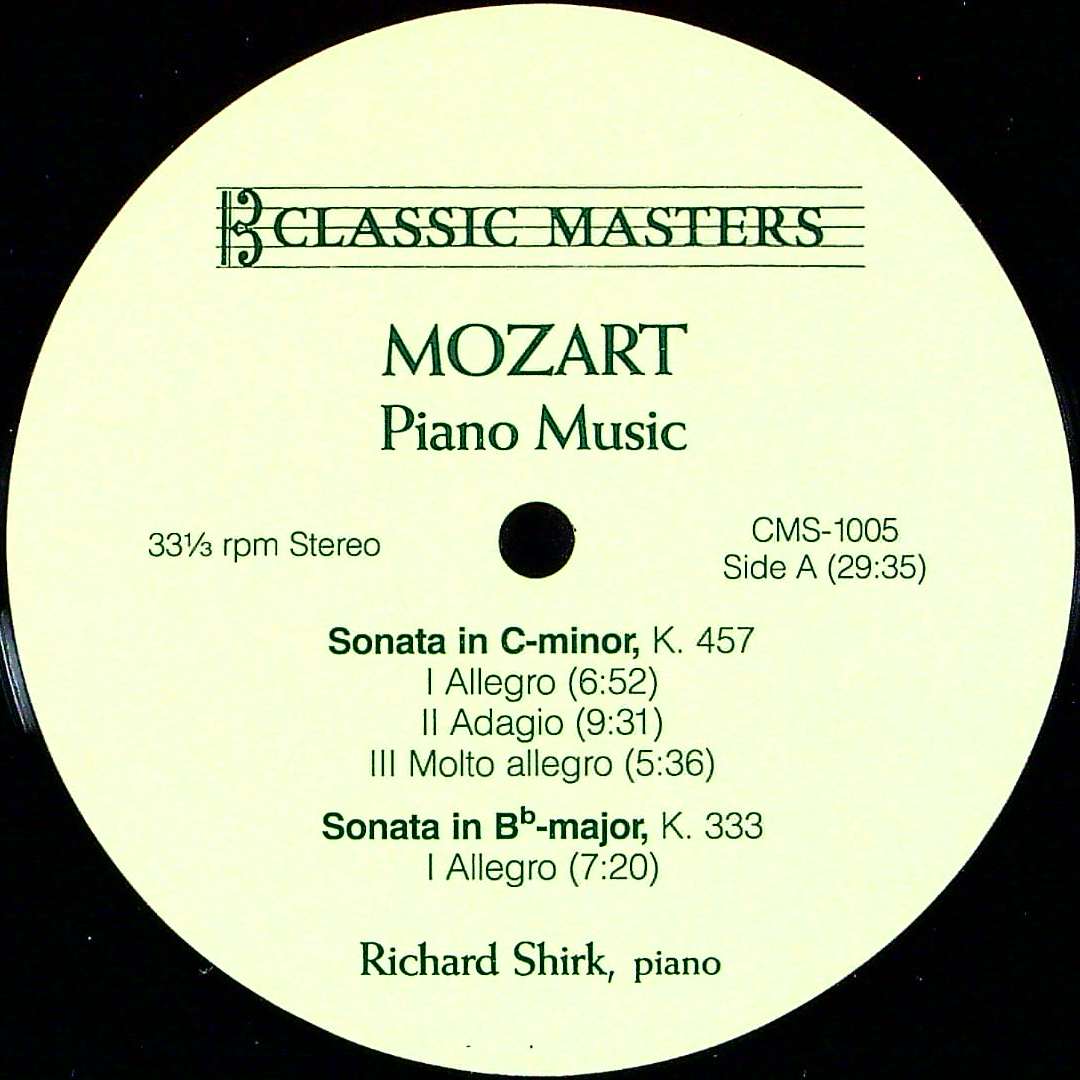 商品コード:1386-015p[CMS] R.シャーク(pf) / モーツァルト:Pfソナタ14番K.457, Pfソナタ13番K.333, 9つの変奏曲K.573