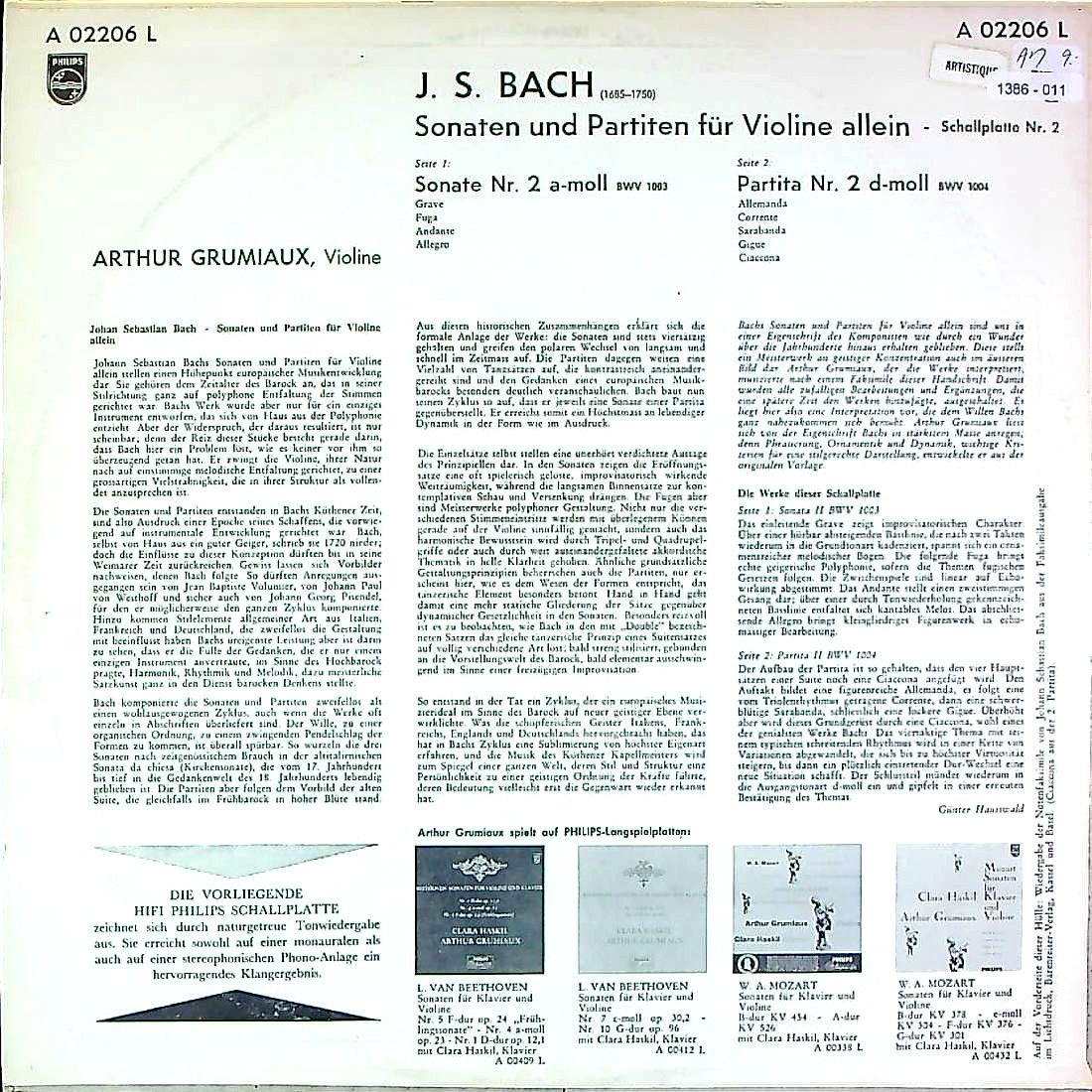 商品コード:1386-011[PHILIPS] A.グリュミオー(vn) / バッハ:無伴奏Vnソナタ2番BWV.1003, 無伴奏Vnパルティータ2番BWV.1004
