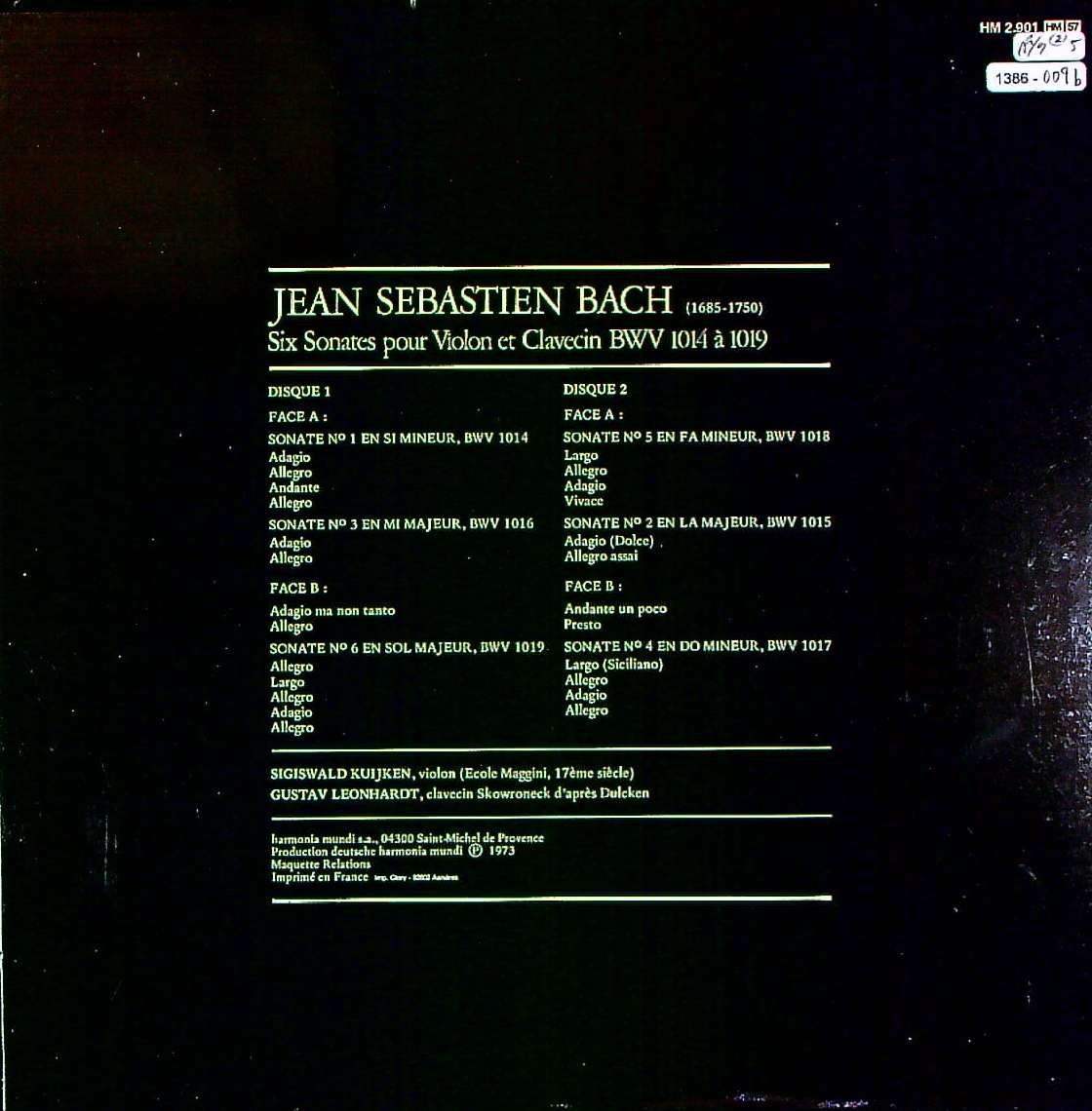 商品コード:1386-009b[HM] S.クイケン(vn) G.レオンハルト(cemb) / バッハ:VnとCembのためのソナタ(全6曲)/BWV.1014~1019