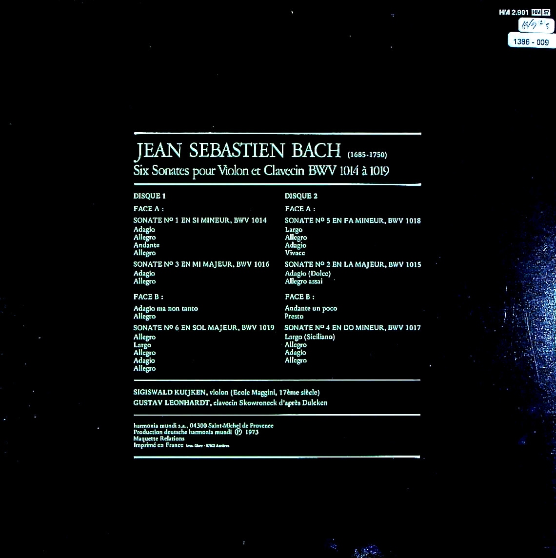商品コード:1386-009[HM] S.クイケン(vn) G.レオンハルト(cemb) / バッハ:VnとCembのためのソナタ(全6曲)/BWV.1014~1019