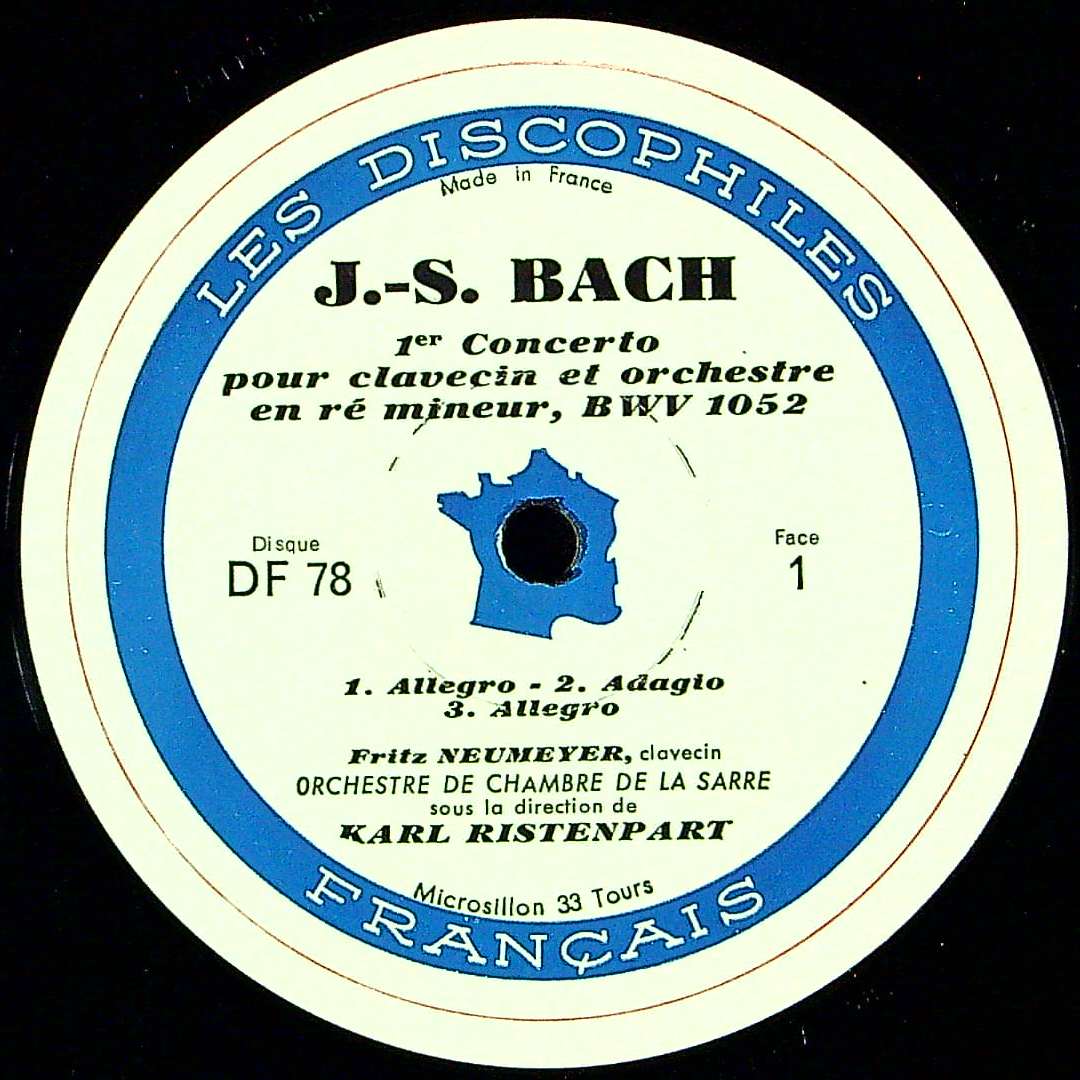 商品詳細:カール・リステンパルト(1900-1967)はドイツの港町キール生まれの指揮者。ベルリン・オラトリオ合唱団の指揮者として活動を開始する。1932年、15名ほどの弦楽奏者を中心にリステンパルト室内管弦楽団を創設し、定期コンサートを開催する。戦後の'46年にベルリンRIAS室内管弦楽団と合唱団を組織した。リステンパルトは1953年からザールブリュッケンのザールラント室内管弦楽団の指揮者に就任する。DFに録音を開始したのはここからである。リステンパルトは1953年10月1日-ドイツ、ザールブリュッケンに18人のメンバーでザール室内管弦楽団を創設する。そのメンバー中10人はベルリンから付いてきた音楽家である。ウルリヒ・グレーリングとフリッツ ・ノイマイヤー(1900-1983)もそこに含まれると思われる。ノイマイヤーはザールブリュッケンの生まれでベルリンで活動していた。同じくベルリンに居たリステンパルトとは早い時期に知り合い、共演もしたと思われる。1967年リステンパルトが亡くなるまでその活動は続き、レーベルもDFからLe Club Français Du Disqueに代わる。1960年代に入り、G.F.ヘンデルなどの新しいメンバーも参加し、Le Club Français Du DisqueではDFで録音した多くの曲の2回目録音を行ったが、この曲は再録音していない。当時チェンバロ協奏曲の録音はバッハの柱として重要な仕事であった。リステンパルトがザールに移ったことでDFと契約することになる。かくしてフランス人たちはリステンパルトの思想による真のバッハ演奏を聴けるようになった。これが逆にドイツでは発売されず、フランスでバッハの神髄が発売されたことは興味深いと言わざるを得ない。ノイマイヤーはドイツでは最も早い時期からチェンバロ演奏の権威として1946年から1969年までベルリン音楽院の教授であった。DF以外にもARCHIVの初期~中期にも録音が多い。