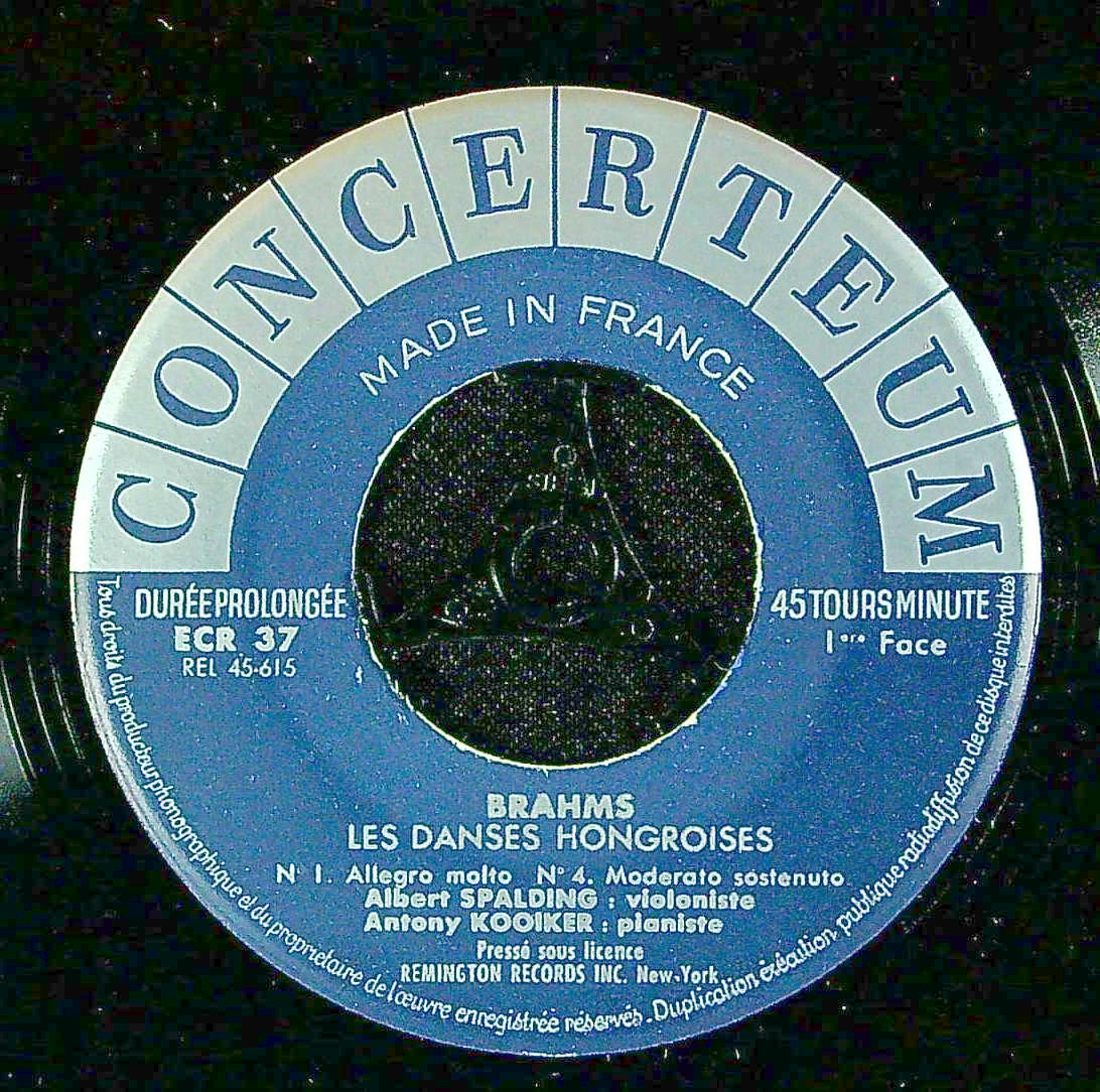 商品詳細:米録音。レミントン R 199-24、仏CONCERTEUM :CR 214が12"オリジナルで16曲を収録。友人のヨーゼフ・ヨアヒムが、ヴァイオリンとピアノのための二重奏曲に編曲した版である。ちなみにフリッツ・クライスラーは第17曲のみを同様の編成のために編曲している。何故かスポルディングは16曲を録音した。これは、その中から1/4/5/6番の4曲をシングル・カットしたものと思われる。12"の方も全曲録音ではないので、有名な4曲だけを集めた7"もまた楽しめる。米国が世界に誇るスーパー巨匠Vn。プレスに恵まれず、米プレスの硬い音で仕方なく聴いておられる方がほとんどだろう。曲数こそ少ないが、この仏プレス45回転ならば音質も良く、スポルディング最上の音が楽しめるとお約束できる!尚フランスでの17cm・7インチ盤はレーベルにより考え方が異なり、CONCERTEUMでは45回転ドーナツ盤が基本で、Les Discophiles Françaisでは33回転盤を基本としている。