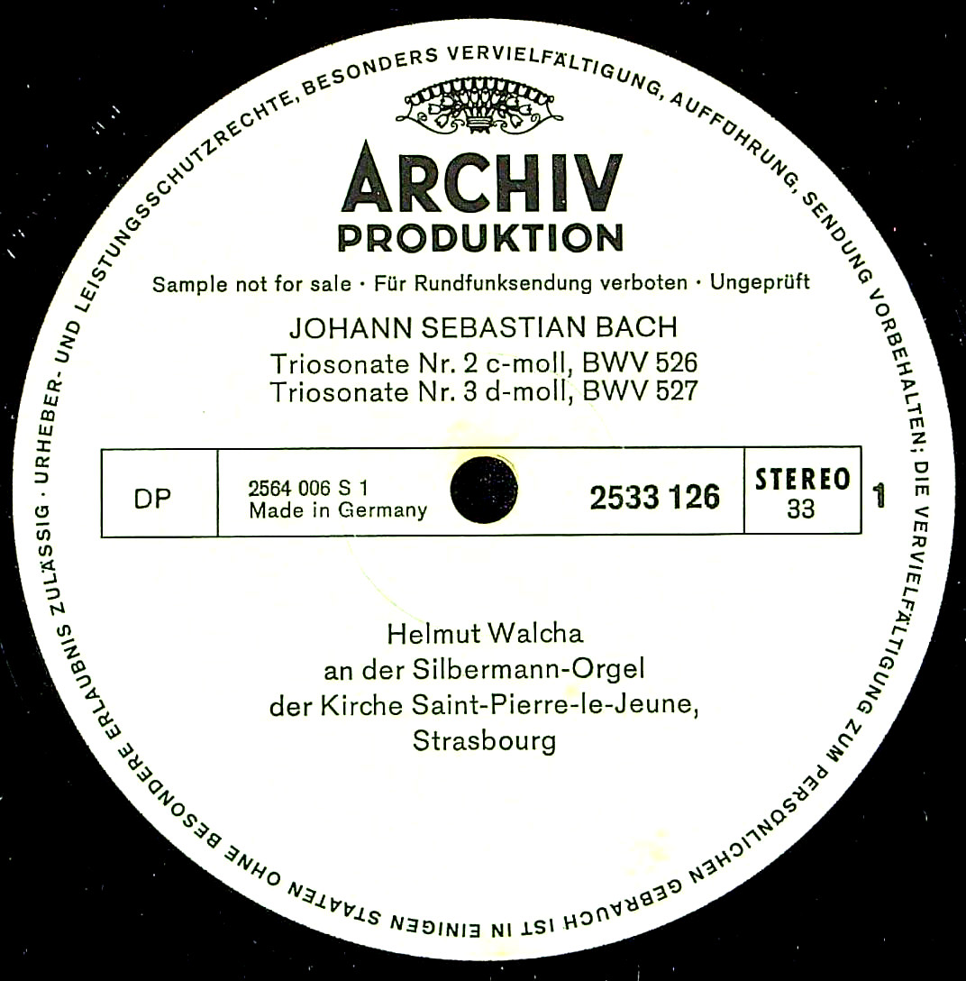 トピックス:白/黒サンプル, 両穴内袋(ジャケ元々存在せず), サンプル・プレス, ストラスブールのサン・ピエール・ル・ジュヌ教会での録音, 両面盤, 初入荷
