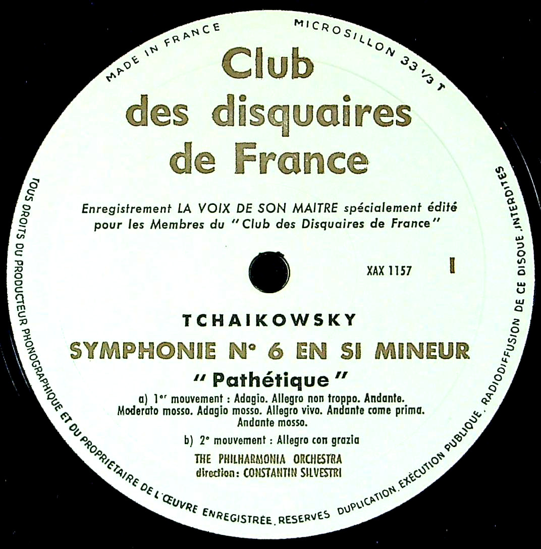 商品コード:1387-059[Club Des Disquaires~] C.シルヴェストリ/ チャイコフスキー:交響曲6番Op.74「悲愴」