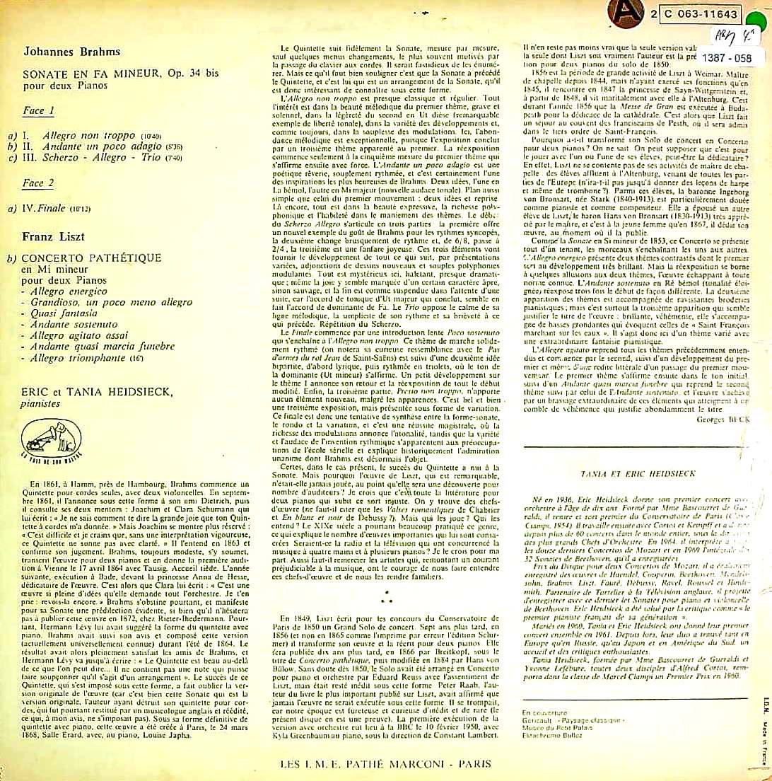 商品コード:1387-058[VSM] E&T.ハイドシェック(pf) / ブラームス:2台PfソナタOp.34b, リスト:2台Pfのための「悲愴協奏曲」