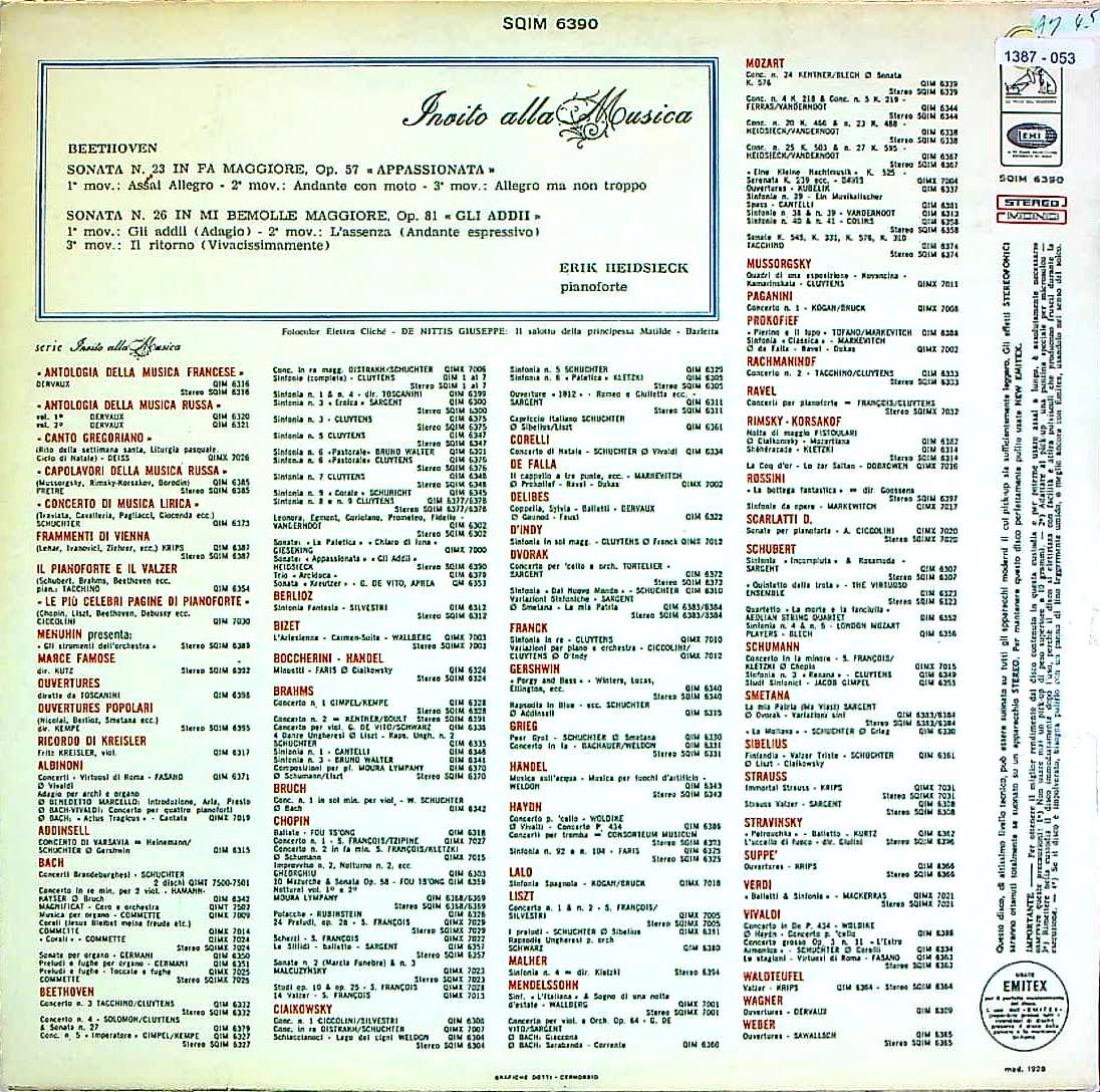 商品コード:1387-053[VDP(EMI)] E.ハイドシェック(pf) / ベートーヴェン:Pfソナタ集/ Pfソナタ23番Op.57「熱情」, 26番Op.81「告別」