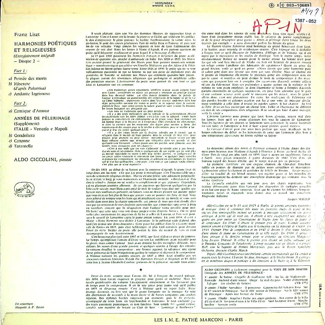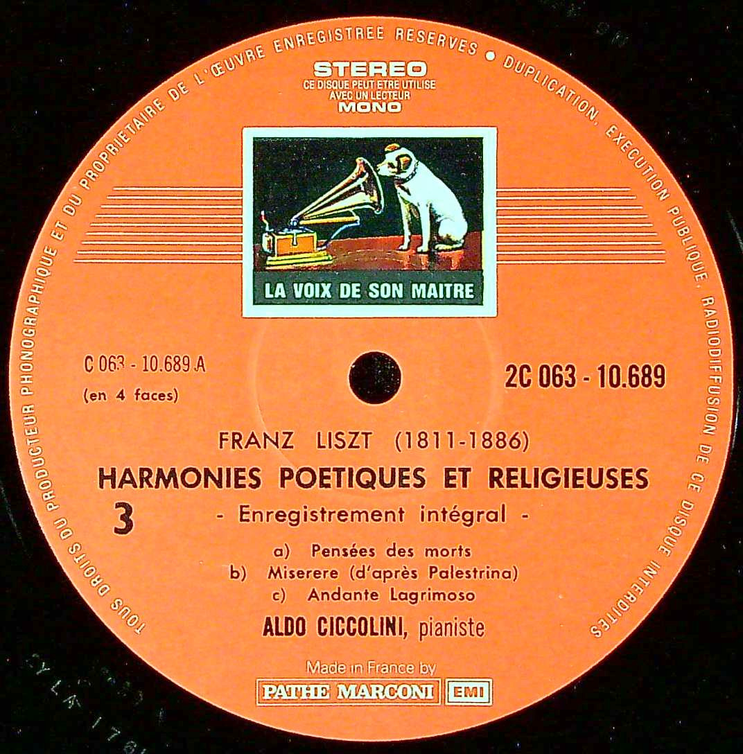 商品コード:1387-052[VSM] A.チッコリーニ(pf) / リスト:詩的で宗教的な調べS.173, 巡礼の年・第2年補遺「ヴェネツィアとナポリ」S.162(抜粋3曲)