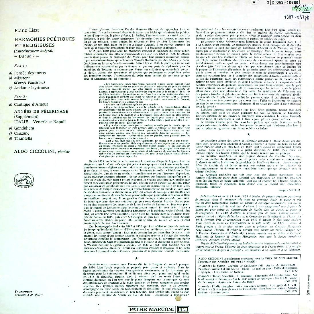 商品コード:1387-051pb[VSM] A.チッコリーニ(pf) / リスト:詩的で宗教的な調べS.173, 巡礼の年・第2年補遺「ヴェネツィアとナポリ」S.162(抜粋3曲)