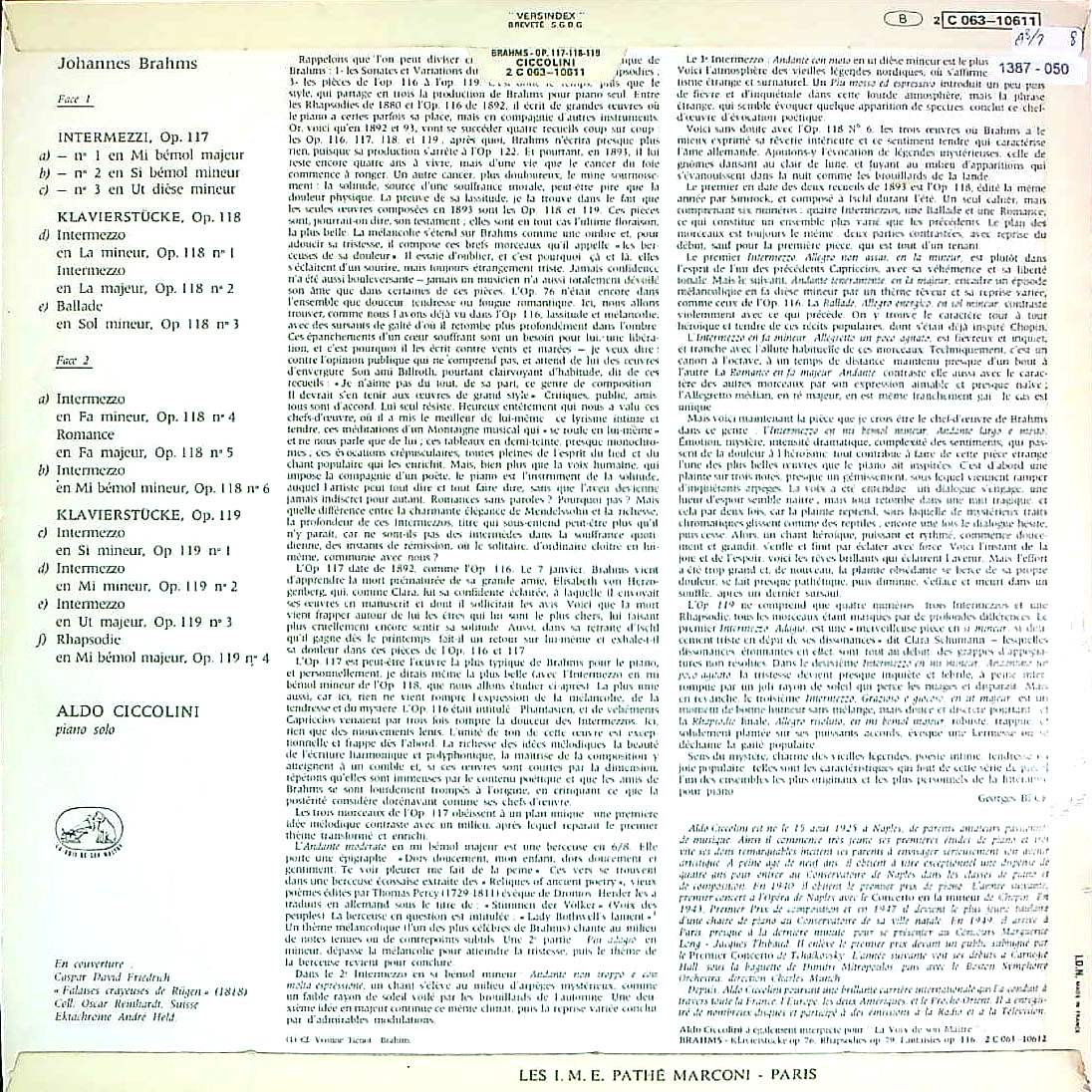 商品コード:1387-050[VSM] A.チッコリーニ(pf) / ブラームス:Pf作品集Vol.1/3つの間奏曲Op.117, 6つの小品Op.118, 4つの小品Op.119