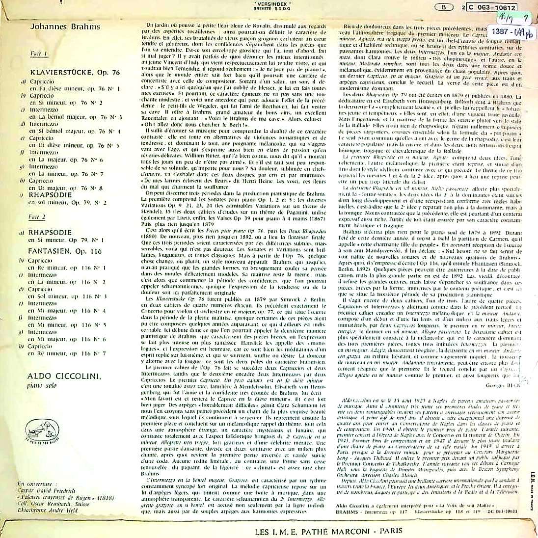 商品コード:1387-049pb[VSM] A.チッコリーニ(pf) / ブラームス:Pf作品集Vol.2/8つの小品Op.76, 2つの狂詩曲Op.79, 7つの幻想曲Op.116