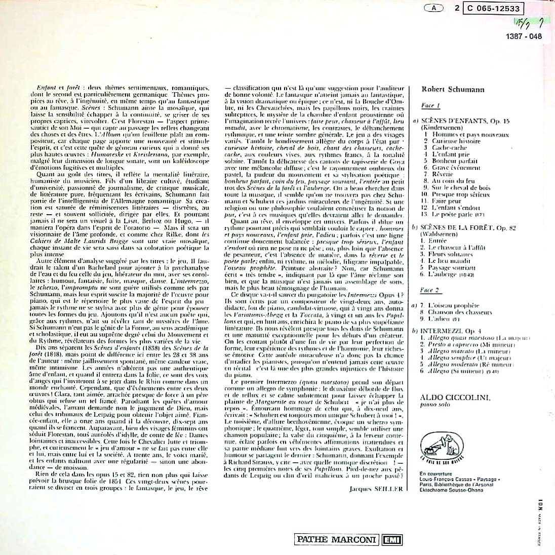 商品コード:1387-048p[VSM] A.チッコリーニ(pf) / シューマン:Pf作品集/子供の情景Op.15, 森の情景Op.82 , 6つの間奏曲Op.4