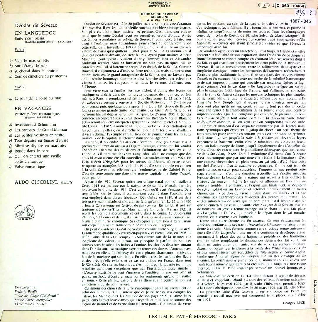 商品コード:1387-045[VSM] A.チッコリーニ(pf) / セヴラック:ピアノ組曲集/「ランドドックにて」, 「ヴァカンスにて」第1集