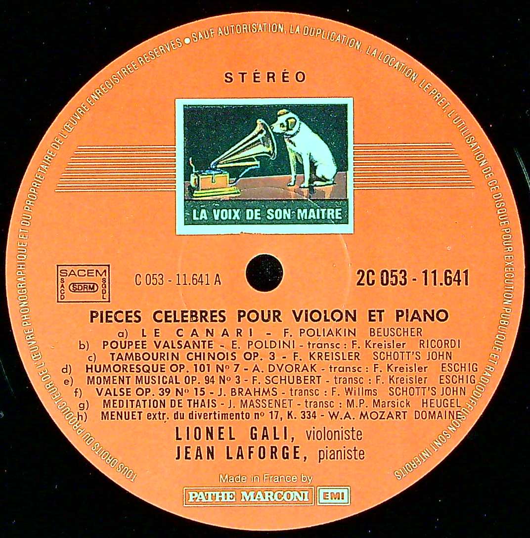 商品詳細:1972年初出の珍しいVn小品集。全16曲入り。'70年代に入って、このような企画は多くない。ピアノのラフォルジュはCNDレーベル等で有名なピアニストだが、Vnのガリは今まで聞いたことのない人。リオネル・ガリと同じ名のヴァイオリニストがBlue Noteに録音を残しており、Jazz系の人なのかも知れない。JAZZ界にもグラッペリのように優れたVnはいる。同一人物なのか不明だがパリ器楽グループのメンバーであったことは解かっている。パリ器楽グループはおそらくJ.ラフォルジュ(pf)L.ガリ(vn)B.パスキエ(va)R.ベー(vc)の4人ではないかと思われる。日本では「新フランス音楽のエスプリ・シリーズ」とのタイトルでサン・サーンスの室内楽曲集を発売していた。1曲1曲の完成度の高さ、節回し等から、若手ではなさそうだ。Vn好きならば、絶対お薦めの一枚!1970年代録音のVn小品集としては最高ランクの内容!入荷は多くない!当LPのフランス語タイトル:「Pièces Célèbres Pour Violon & Piano」。