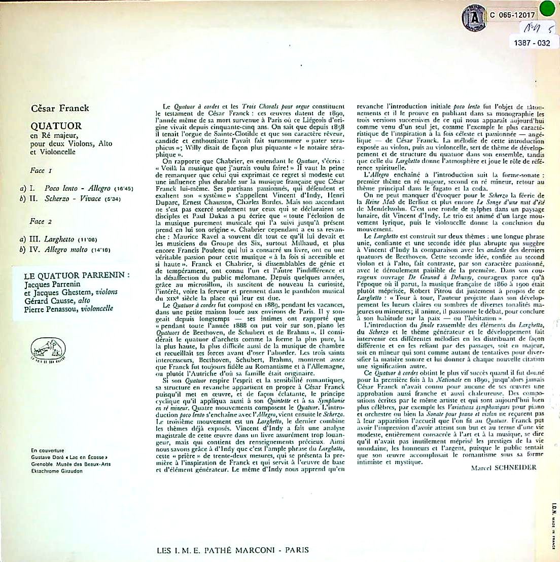 商品コード:1387-032[VSM] パルナンQt./ フランク:弦楽四重奏曲 ニ長調