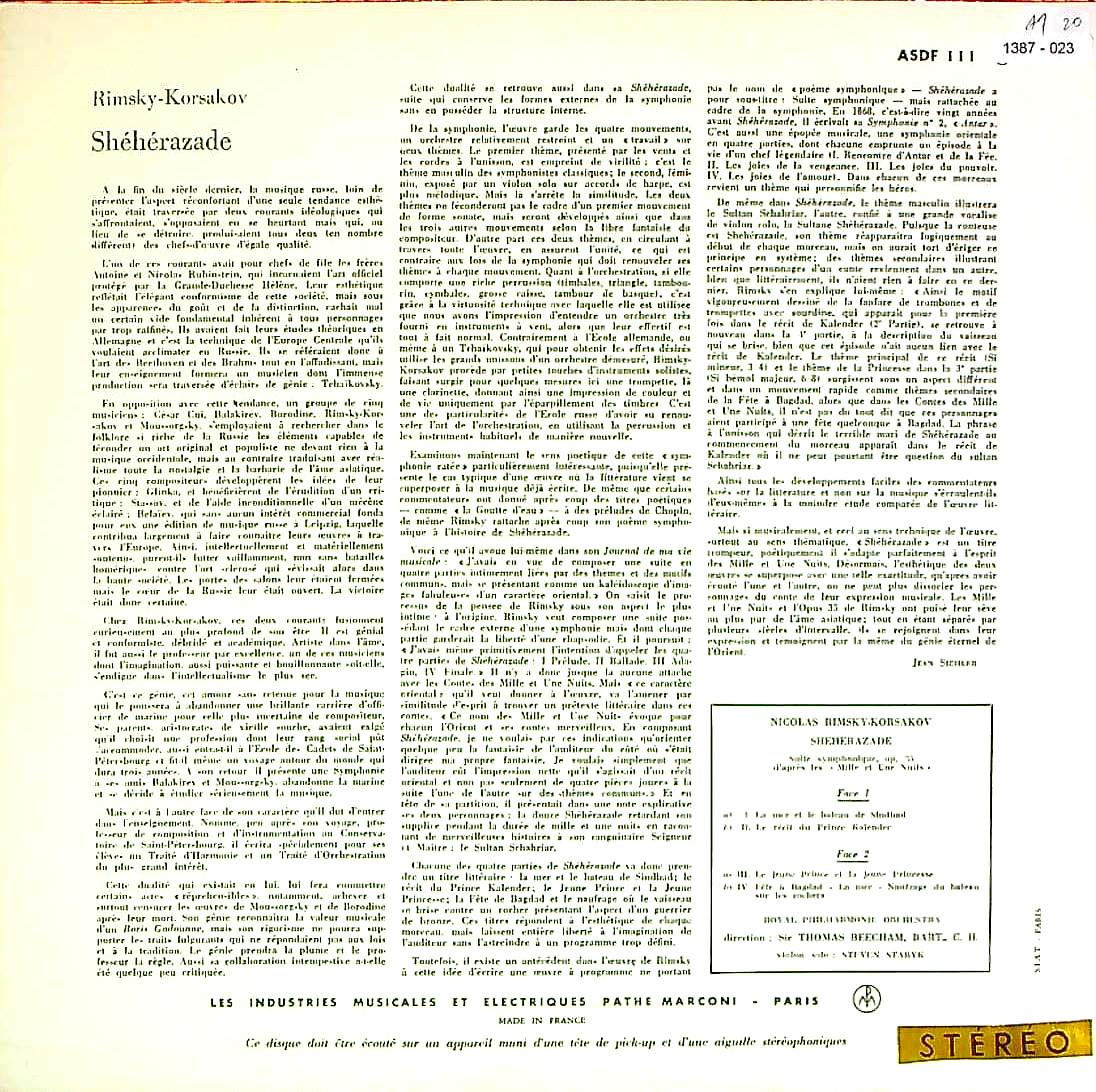 商品コード:1387-023[VSM] T.ビーチャム/ リムスキー・コルサコフ:シェヘラザードOp.35