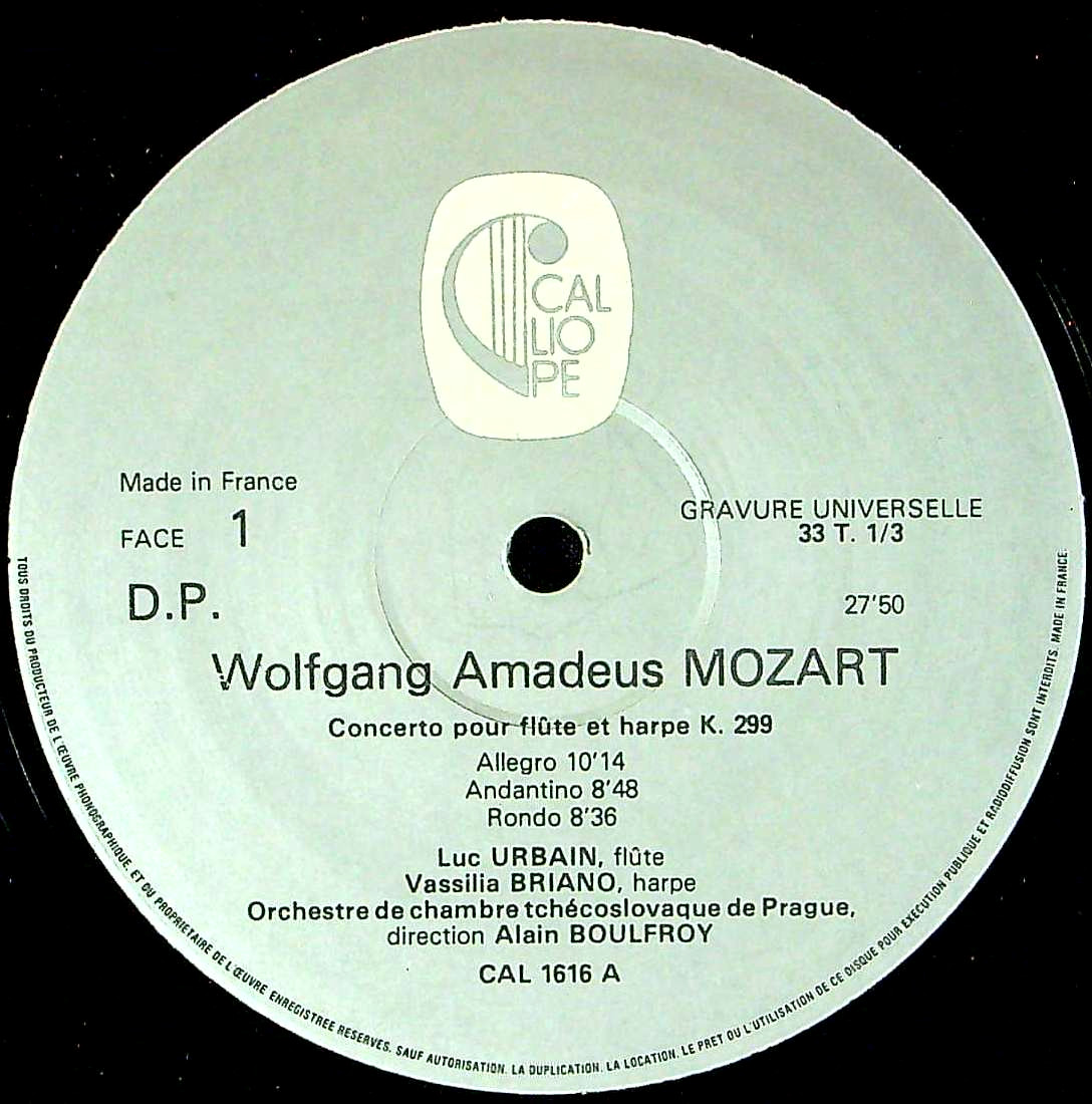 商品コード:1387-016[CALLIOPE] L.ユルバン(fl) V.ブリアーノ(hp)/ モーツァルト:Fl・Hp協奏曲K.299, Fl協奏曲1番K.313, アンダンテK.315