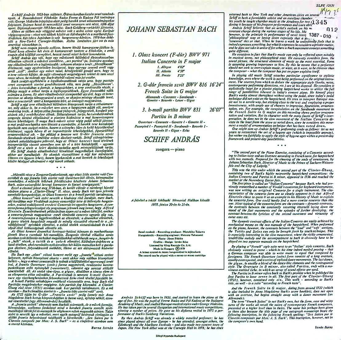 商品コード:1387-010n[HUNGAROTON] A.シフ(pf) / バッハ:イタリア協奏曲B.971, フランス組曲5番B.816, フランス風序曲B.831