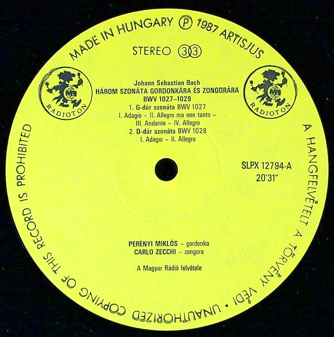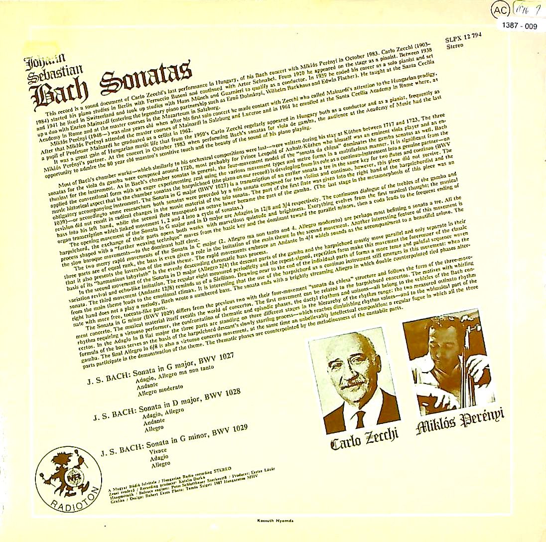 商品コード:1387-009n[HUNGAROTON] M.ペレーニ(vc)/ バッハ:Vcソナタ(全3曲)BWV.1027~1029