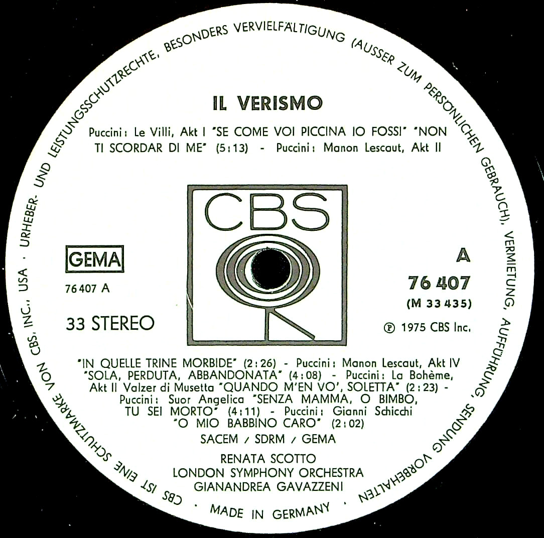 商品コード:REG-4423[独CBS] R.スコット(s) / 「ヴェリスモ・オペラ・名アリア集」プッチーニ, カタラーニ, チレア, マスカーニ