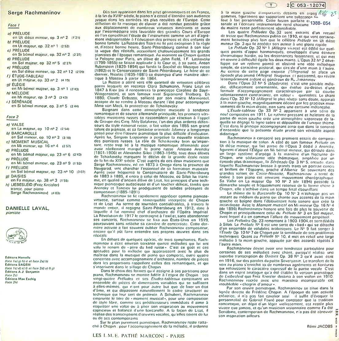 商品コード:1388-054p[VSM] D.ラヴァル(pf) / ラフマニノフ:前奏曲(8曲), 絵画的練習曲Op.33-2, 悲歌Op.3-1, メロディOp.3-3, セレナーデOp.3-5, 楽興の時Op.16-4 他全17曲