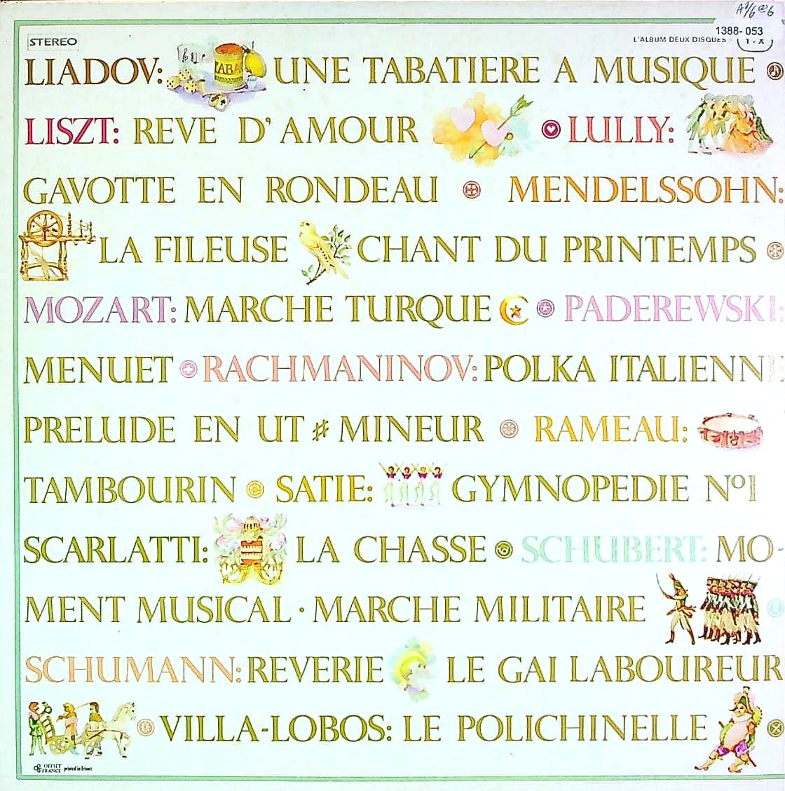 商品詳細:モーツァルトのPfソナタの録音が素晴らしかったD.ラヴァルが入れた小品集。'70年代の録音だが、数ある小品集の中でも出色の出来だと思う。2枚で34曲を上手く配置し、長い曲でも6分半という本当の小品集で、リサイタル盤とは発想が異なる。全25人の作曲家の写真付でPf曲のカタログとしても役立つ。近年彼女の良さが序々に浸透してきたがまだ充分とは言えない。'70年代では特別に優れた女性ピアニスト。自信を持って推薦するPf小品集。カラー切手オリジナルは少ない。1970年代の傑作ピアノLP!100%絶対に損のない2枚組!Danielle Laval (ダニエル・ラヴァル)はフランスの女性ピアニスト。3歳よりピアノを始め、5、6歳より本格的にピアノを学び始める。12歳のときエコールノルマル音楽院に入学し、クロード・デルヴァンクール、リュセット・デカーヴ、ジーン・バタラに師事。更にパリ国立高等音楽・舞踊学校に入学し、ピアノの研鑽を積む。ピエール・デルヴォー、アルミン・ジョルダン、アレクサンダー・ラザレフ、ローレンス・フォスター、アラン・ロンバール、パスカル・ヴェロなどの偉大な指揮者と共演を行った。ニーノ・ロータ(ピアノ協奏曲)、ミシェル・ルグランなどの近代作品の録音もある。ダニエル・ラヴァルは、2011年9月にブカレストで開催されたジョージ・エネスク・ピアノ・コンクールの審査委員長に任命された。競争の厳しいフランスの楽壇に於いてこれだけ多くの録音をEMI系のメジャーに残すラヴァルだが、情報があまりに少ないのが実情。実際に録音を聴いて何かを感じていただきたい。これはラヴァルの実力を知っていただくにはまたとない小品集。このような小品にピアニストの本質が表れる。