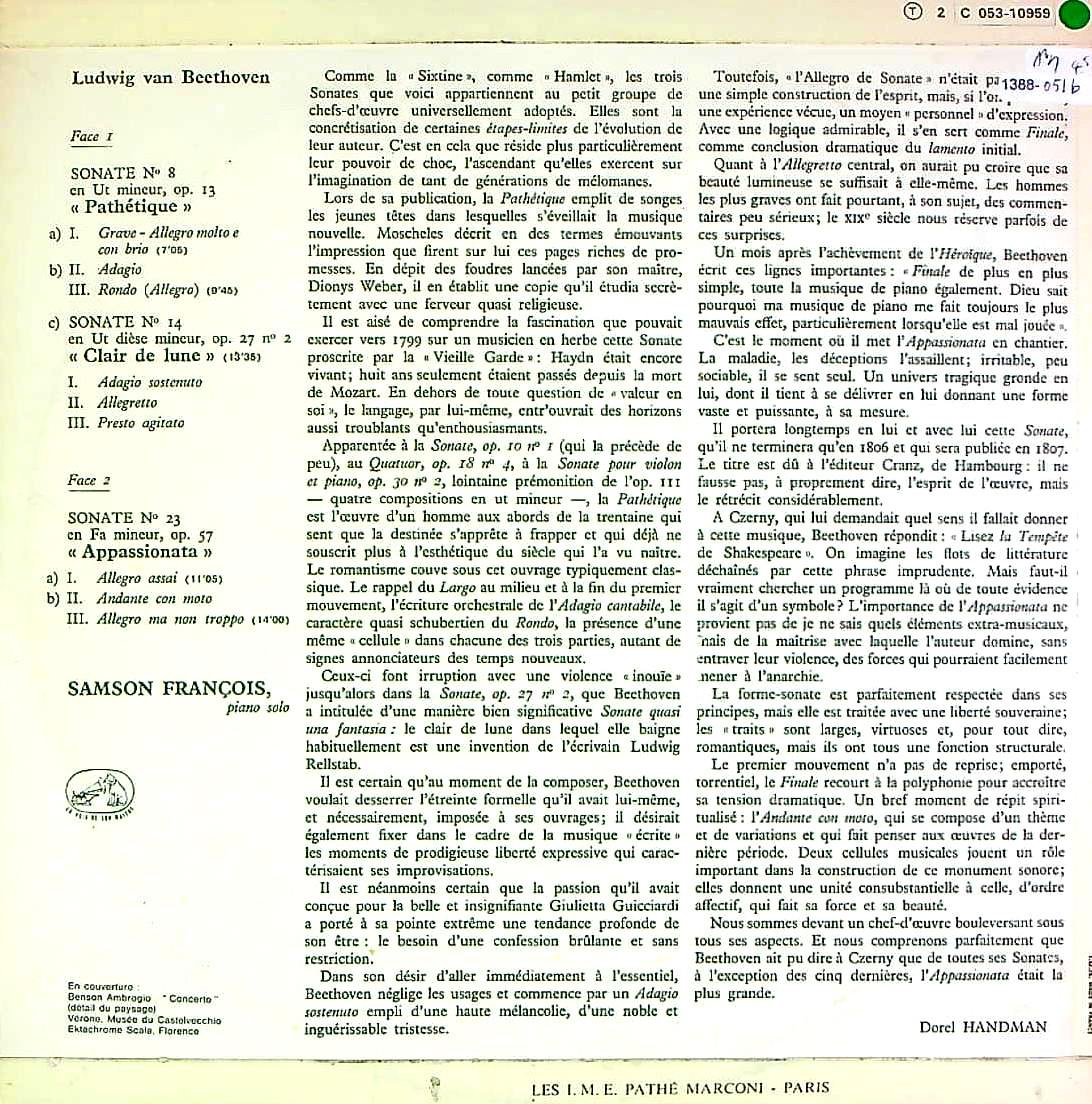 商品コード:1388-051b[VSM] S.フランソワ(pf) / ベートーヴェン:Pfソナタ8番「悲愴」Op.13, Pfソナタ14番「月光」Op.27-2, Pfソナタ23番「熱情」Op.57