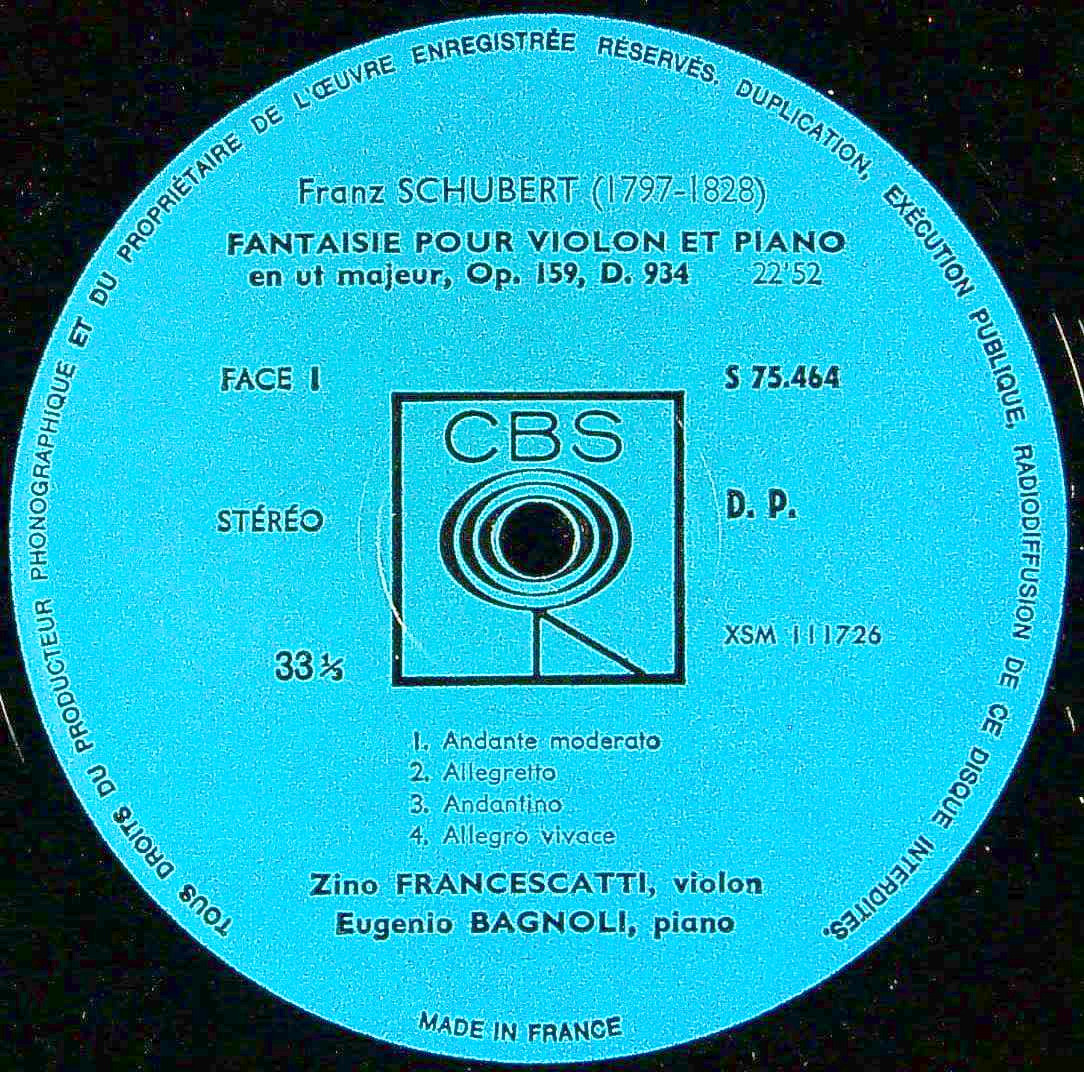 商品コード:1388-046[CBS] Z.フランチェスカッティ(vn)/ シューベルト:幻想曲D.934, ソナチネ1番D.384, ソナチネ3番D.408