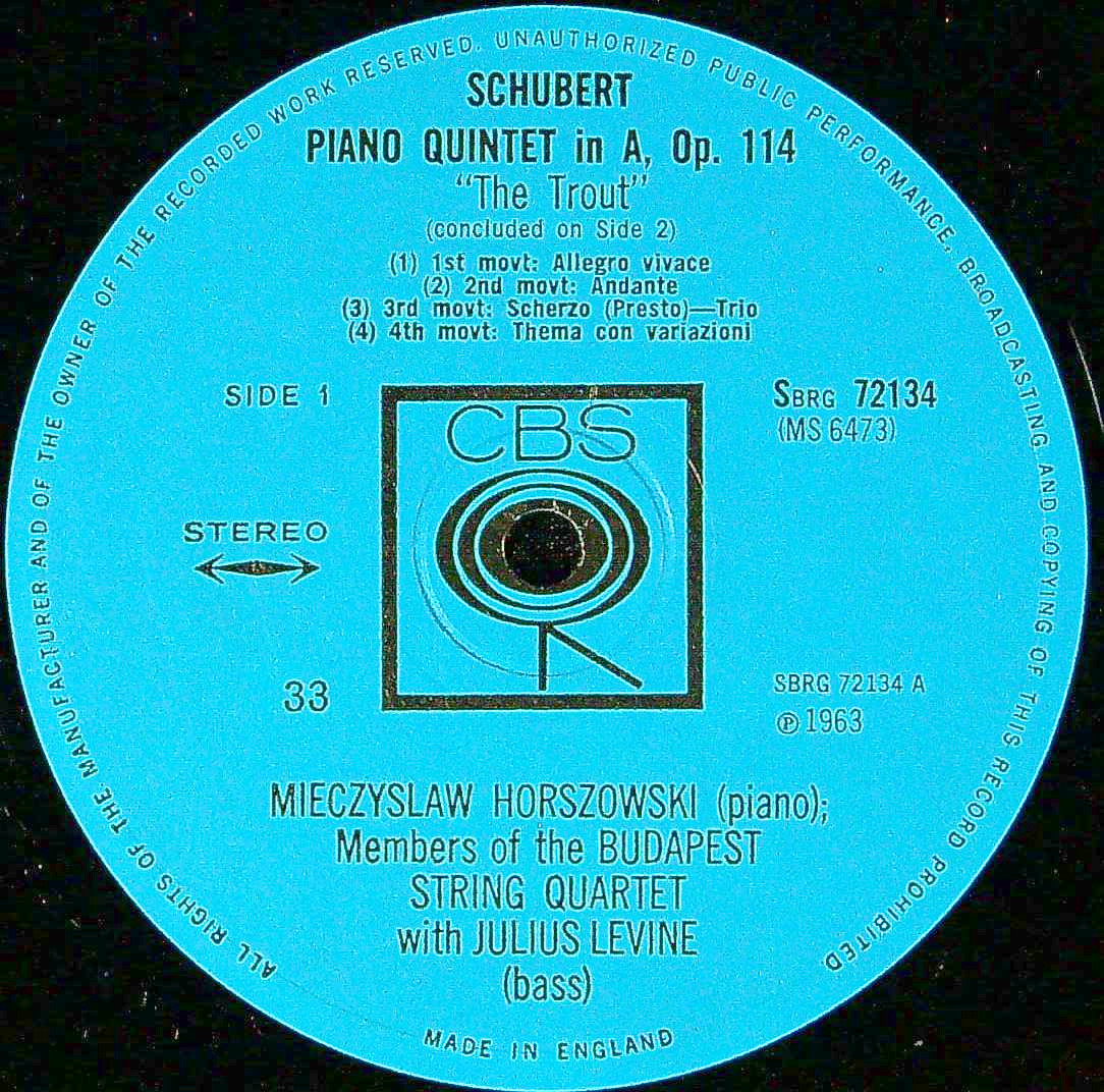 商品コード:1388-041b[CBS] M.ホルショフスキ(pf) ブダペストQt. 他/ シューベルト:Pf五重奏曲D.667 「鱒」, ベートーヴェン:Pf四重奏曲Op.16