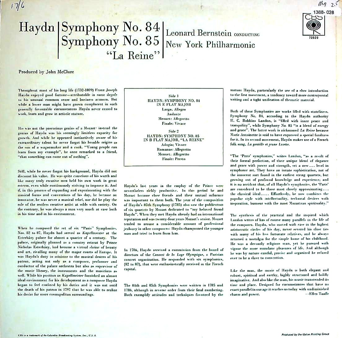 商品コード:1388-028[CBS] L.バーンスタイン/ ハイドン:交響曲第84番Hob. I:84, 第85番 「王妃」 Hob. I:85