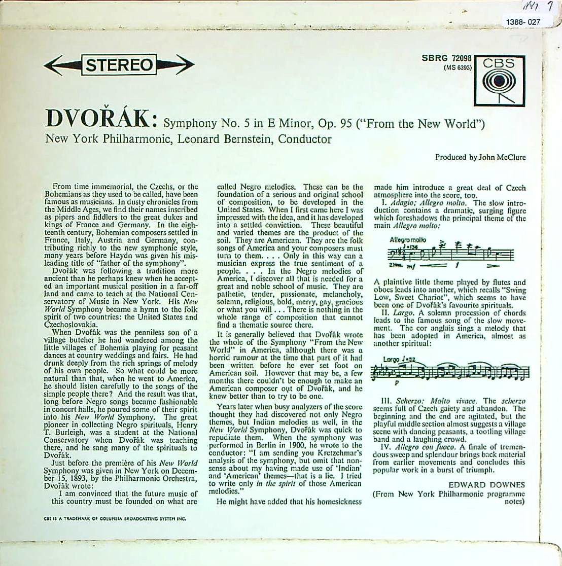 商品コード:1388-027[CBS] L.バーンスタイン/ ドヴォルザーク:交響曲9番Op.95「新世界より」