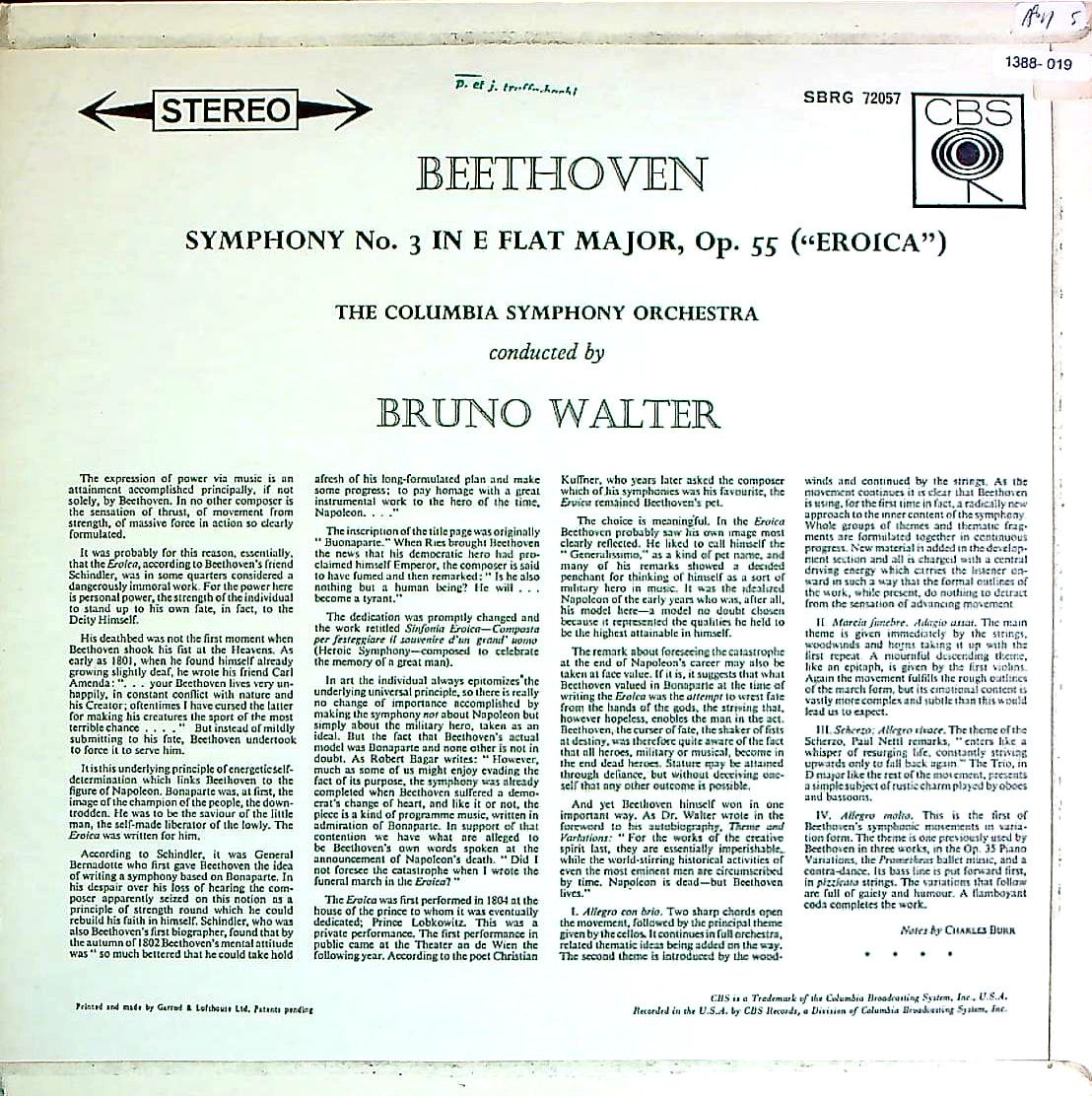商品コード:1388-019[CBS] B.ワルター/ ベートーヴェン:交響曲3番Op.55「英雄」
