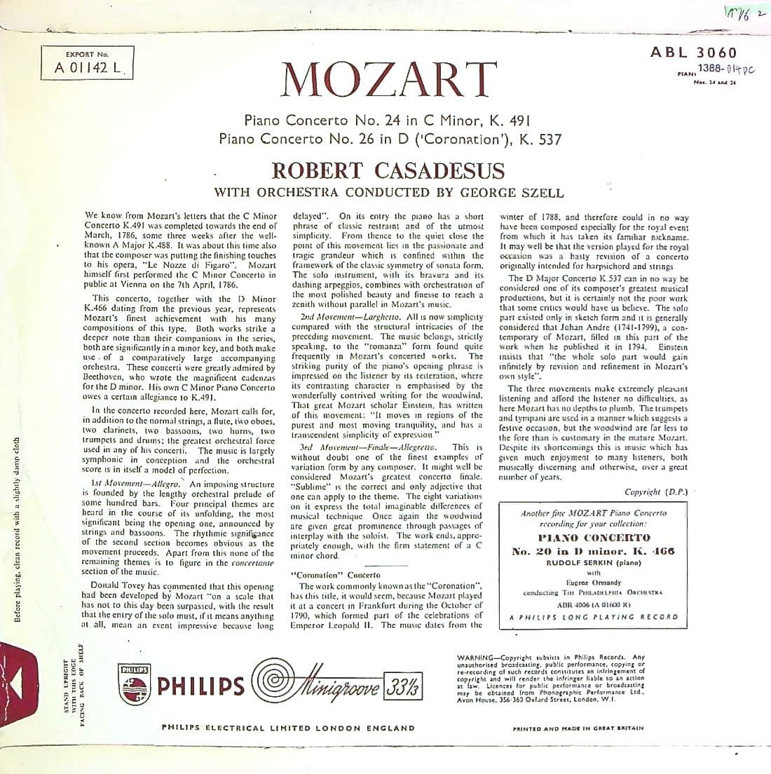 商品コード:1388-014pc[PHILIPS] R.カサドシュ(pf)/ モーツァルト:Pf協奏曲24番K.491, 26番K.537「戴冠式」