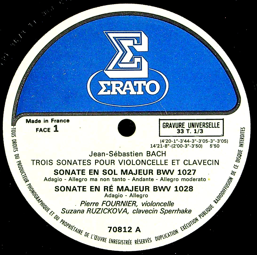 商品コード:1388-010[ERATO] P.フルニエ(vc) Z.ルージチコヴァー(cemb) / バッハ:Vcソナタ(全3曲)BWV.1027~1029