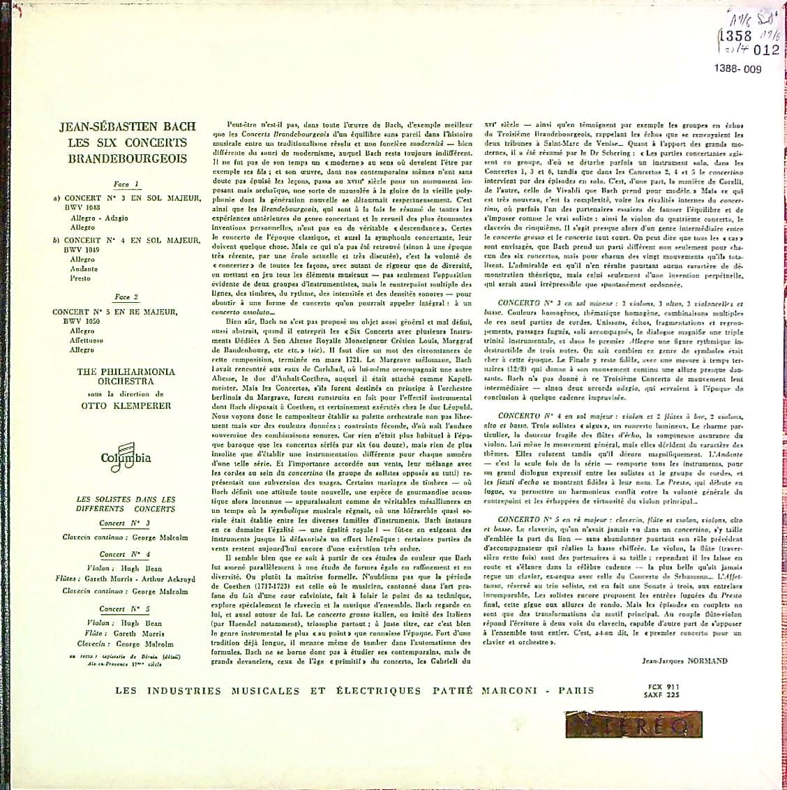 商品コード:1388-009[COLUMBIA] O.クレンペラー/ バッハ:ブランデンブルク協奏曲BWV.1046~1051