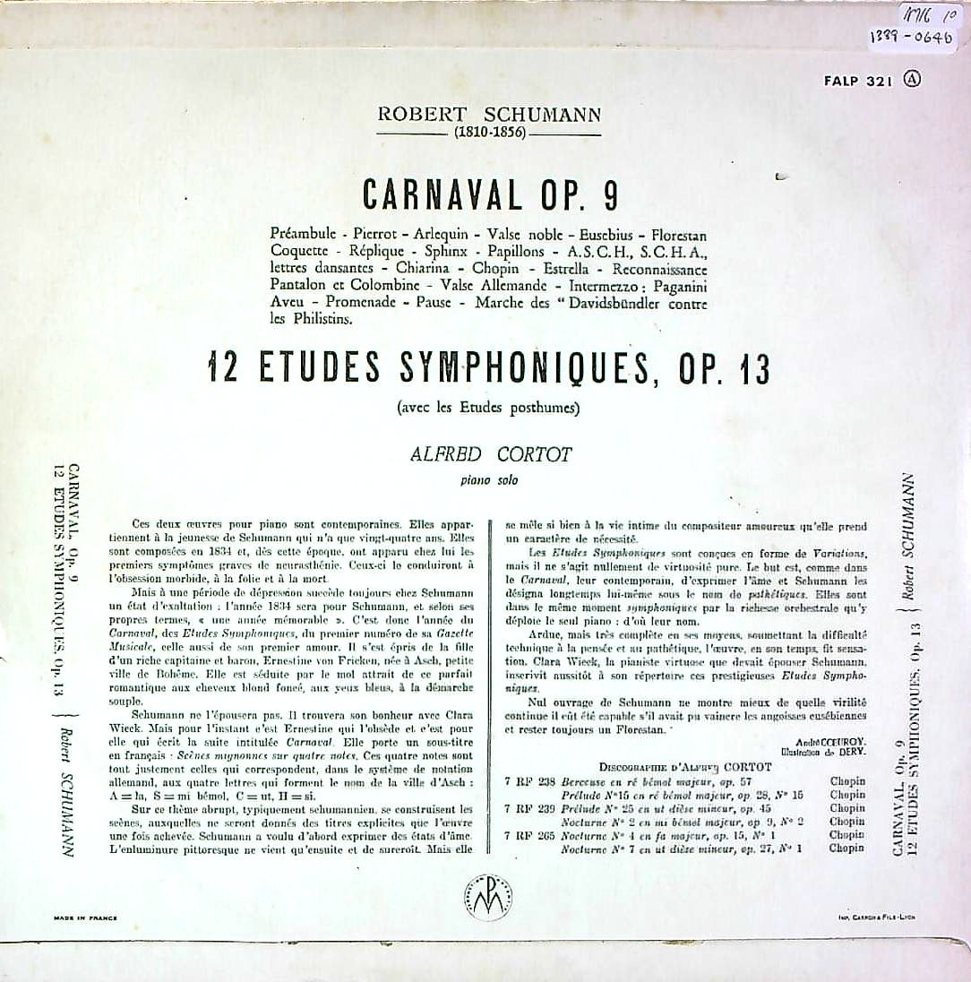 商品コード:1389-064b[VSM] A.コルトー(pf) / シューマン:謝肉祭Op.9(全20曲), 交響的練習曲Op.13(全13曲/遺作付き完全版)