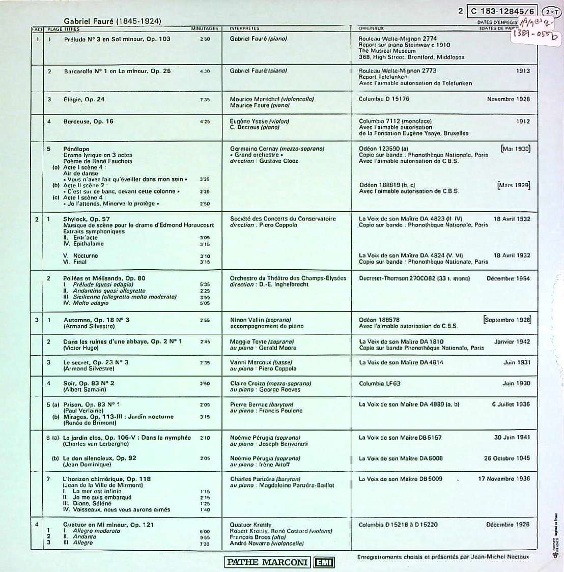 商品コード:1389-055b[VSM] G.フォーレ(pf) E.イザイ(vn) 他 / フォーレ没後50年企画盤/前奏曲3番, 舟歌1番, エレジー, 子守歌, シャイロック, ペレアスとメリザンド 他