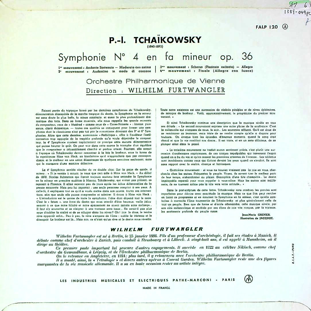トピックス:1951年1月4・8-10日/2月16日/11月4-8日ウィーンでのSP/モノラル録音, 録音詳細不明, 英国では1951年His Master's VoiceのSP:DB. 21376, -81(12"×6枚)にて初リリース→LPは1952年The Gramophone Co. Ltd.によりコピーライト登録・同年His Master's Voice:ALP 1025(金大ニッパー中溝レーベル・フラット盤・前期コロネーションジャッケット入り)にて初リリース→1957年頃金大ニッパー段付GGレーベル・後期コロネーションホタテ貝紙ジャケット入り→1961年ENC 109→1973年Unicorn:WFS 7, フランスでは1953年頃La Voix De Son Maître:FALP 120にて初リリース→1955年頃銀大ニッパー内溝レーベル・Disques Incassableなし・フラット盤・折返両面コートペラ・ジャケット入り→1959年頃銀大ニッパー段付レーベル・グルーヴガード厚手盤・折返両面コートペラ・ジャケット入り(当アイテム)→1960年頃FALP5桁番号がリリースされたと思われる(棒付ジャケット入りは未入荷・存在しないと思われる), ドイツではELECTROLA:WALP 1025にて初リリース→E 90 030, 米国では1952年RCA:LHMV-1005, イタリアでは1955年La Voce Del Padrone:QALP 10095, MELODIYA:Д 028793, Disques Incassable付レーベルで盤質7はありえない