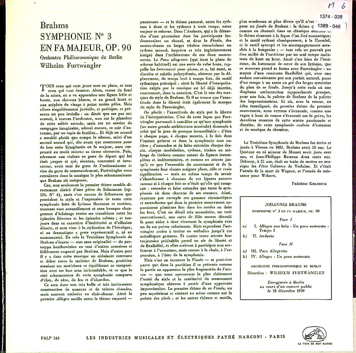商品コード:1389-046[VSM] W.フルトヴェングラー/ ブラームス:交響曲3番Op.90