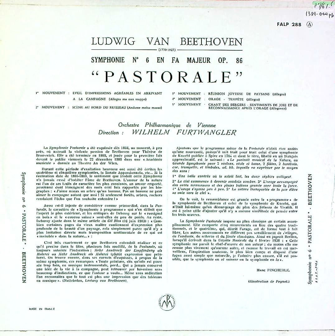 商品詳細:6番「田園」の録音は8種存在する。ベルリンpo.がソ連に一時接収された為、MELODIYAから出た戦中録音(D 027777)も人気が高いが、この1952年11月24-5日ウィーンpo.も有名。英ALP 1041、独WALP 1041、ETERNA 820 045。オケが僅かに荒く感じるが、その分押し出しが強く、フルトヴェングラーらしさを味わうのに最適の一枚。フランスではペラジャケと棒付きジャケの2種が存在するが中身が同じことが多い。ペラジャケが先行発売された。フランスにはジャケットが数種あるが、異なるジャケットにも同じ盤が入っているケースが多い。重量盤で出てくる音も重量級である!この録音は世界的に有名で非常に多くの国でプレスされた。フルトヴェングラーの代表的な録音の一つ! フランスでのプレスの種類は多く、年代を反映した価格としている。英国盤入りのフランス発売分は例外的なケースで多くはない!