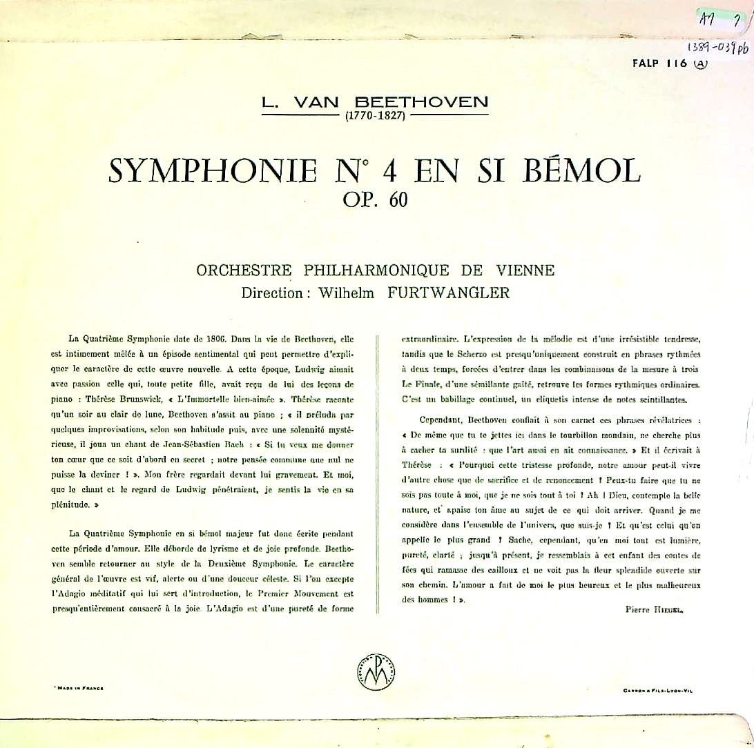 商品コード:1389-039pb[VSM] W.フルトヴェングラー/ ベートーヴェン:交響曲4番Op.60