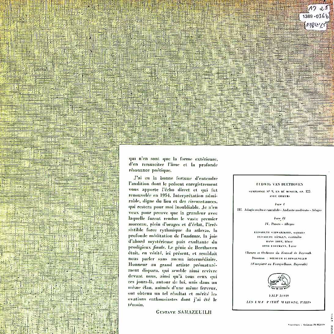 商品コード:1389-036b[VSM] W.フルトヴェングラー/ ベートーヴェン:交響曲9番Op.125「合唱」