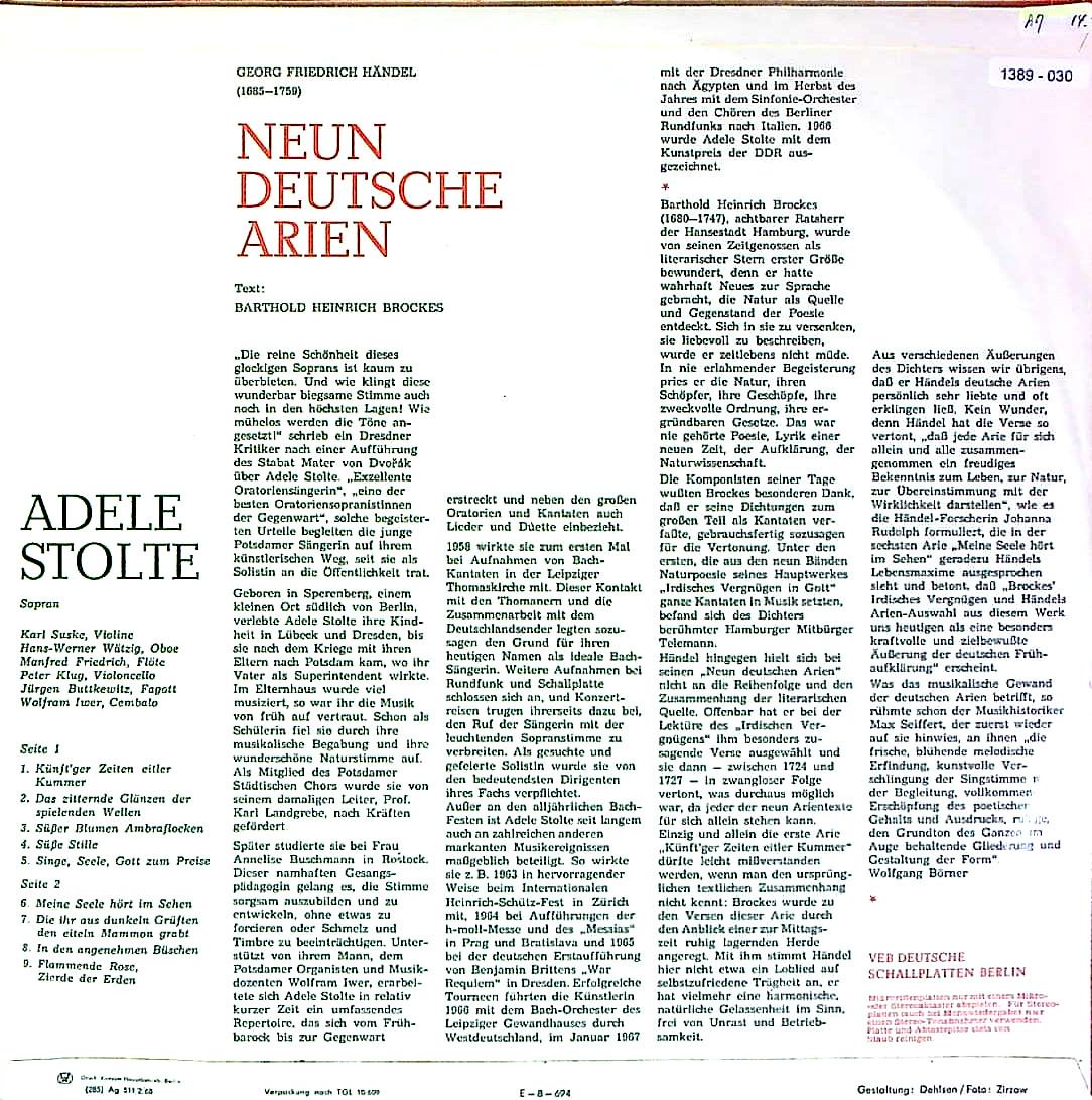 商品コード:1389-030n[ETERNA] A.シュトルテ(s) K.ズスケ(vn) 他/ ヘンデル:9つのドイツ語のアリアHWV.202~210
