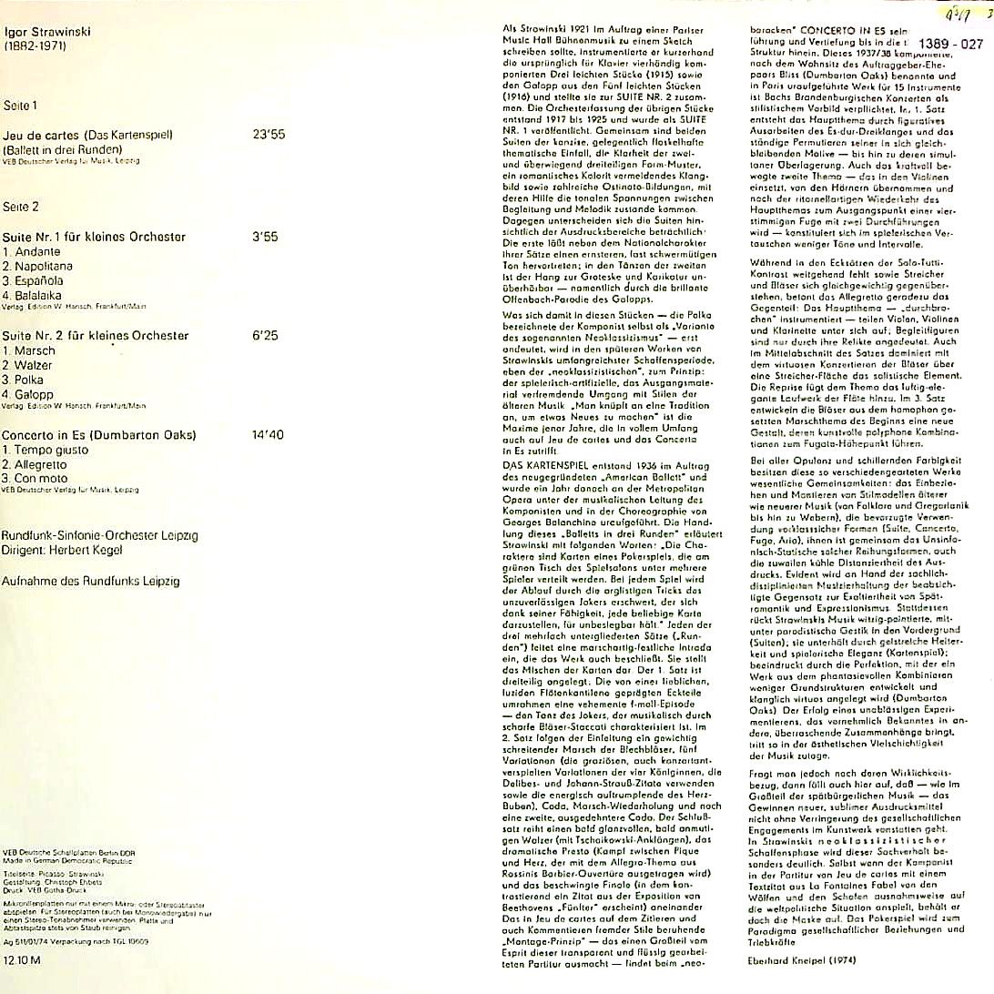 商品コード:1389-027n[ETERNA] H.ケーゲル/ ストラヴィンスキー:カルタ遊び, 小管弦楽組曲1番&2番, ダンバートン・オークス