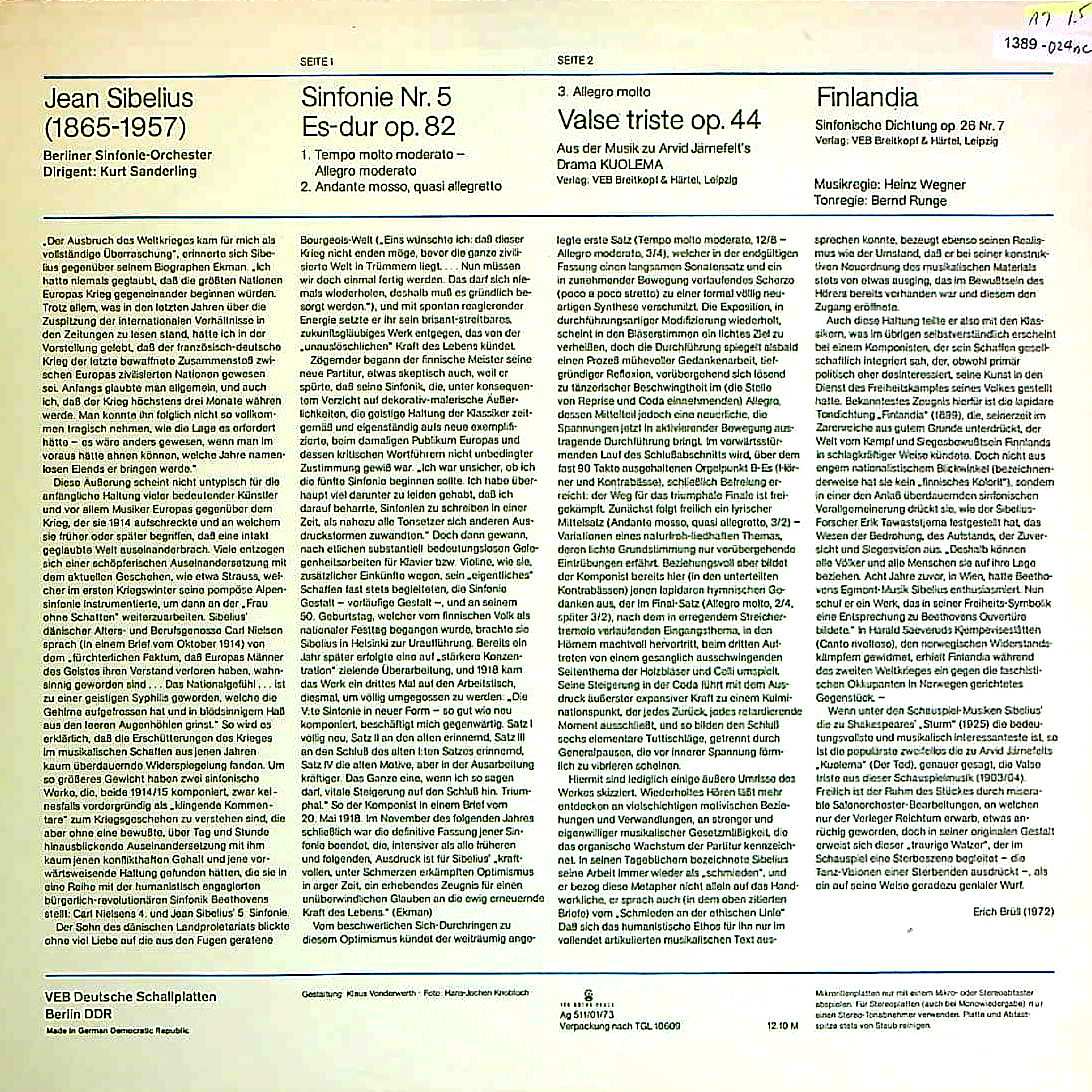 商品コード:1389-024nc[ETERNA] K.ザンデルリング/ シベリウス:交響曲5番Op.82, 悲しきワルツOp.44, フィンランディアOp.26