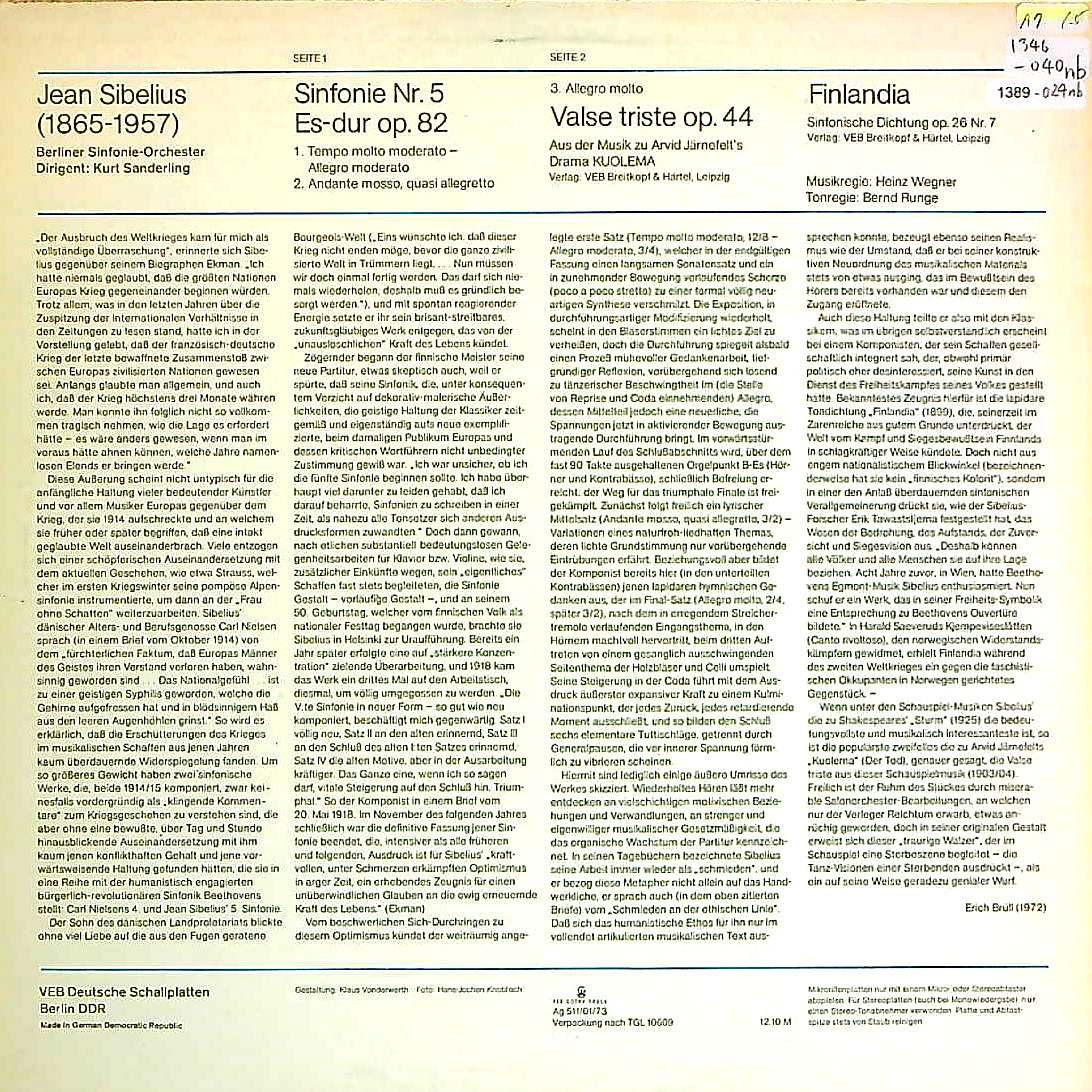 商品コード:1389-024nb[ETERNA] K.ザンデルリング/ シベリウス:交響曲5番Op.82, 悲しきワルツOp.44, フィンランディアOp.26