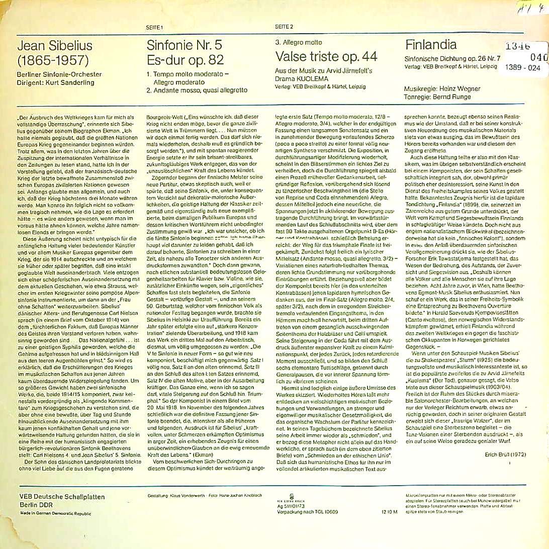 商品コード:1389-024n[ETERNA] K.ザンデルリング/ シベリウス:交響曲5番Op.82, 悲しきワルツOp.44, フィンランディアOp.26